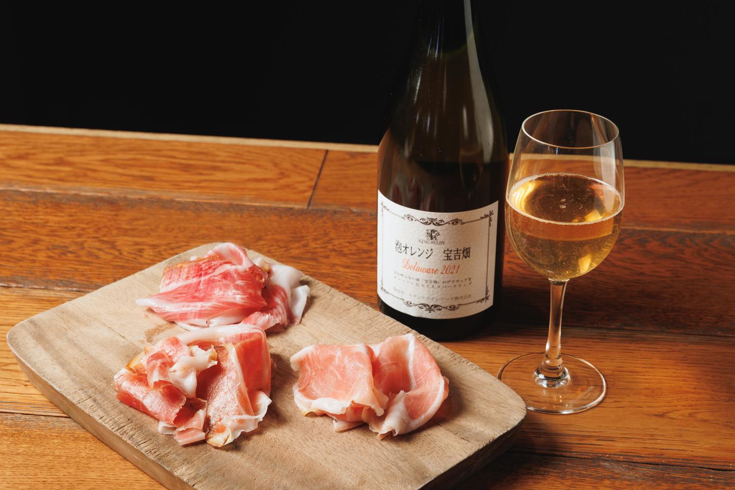1914年から続く老舗「カタシモワイナリー」のオレンジワインは、デラウェアをオレンジワインの製法で仕込み、瓶内二次発酵させたにごりタイプのやや辛口スパークリングワイン。