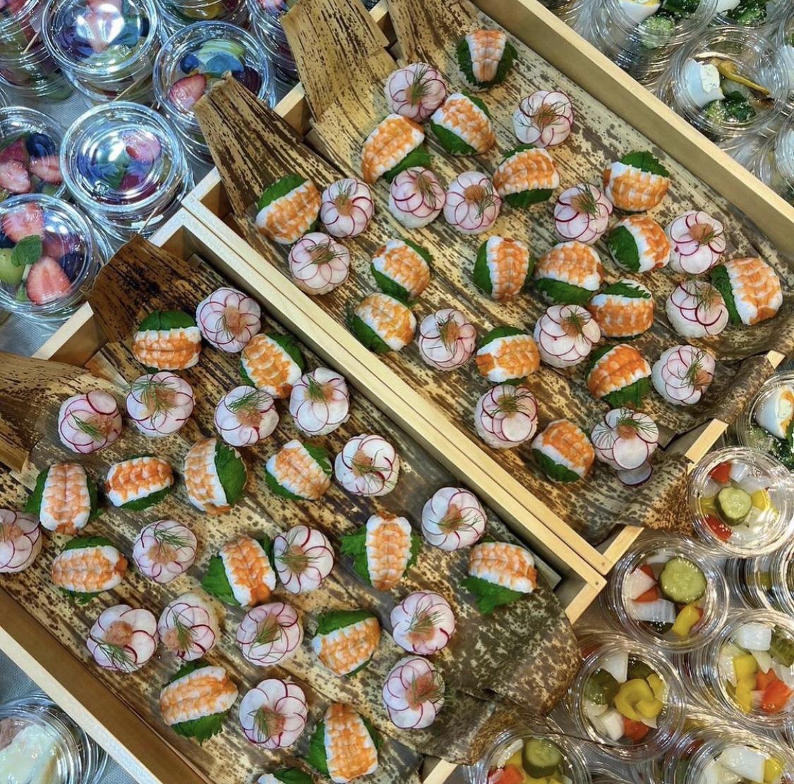 美菜屋のケータリングは人気のおかずカップや稲荷寿司などhebeerryk!のナチュラルワインに合う内容でご用意します。