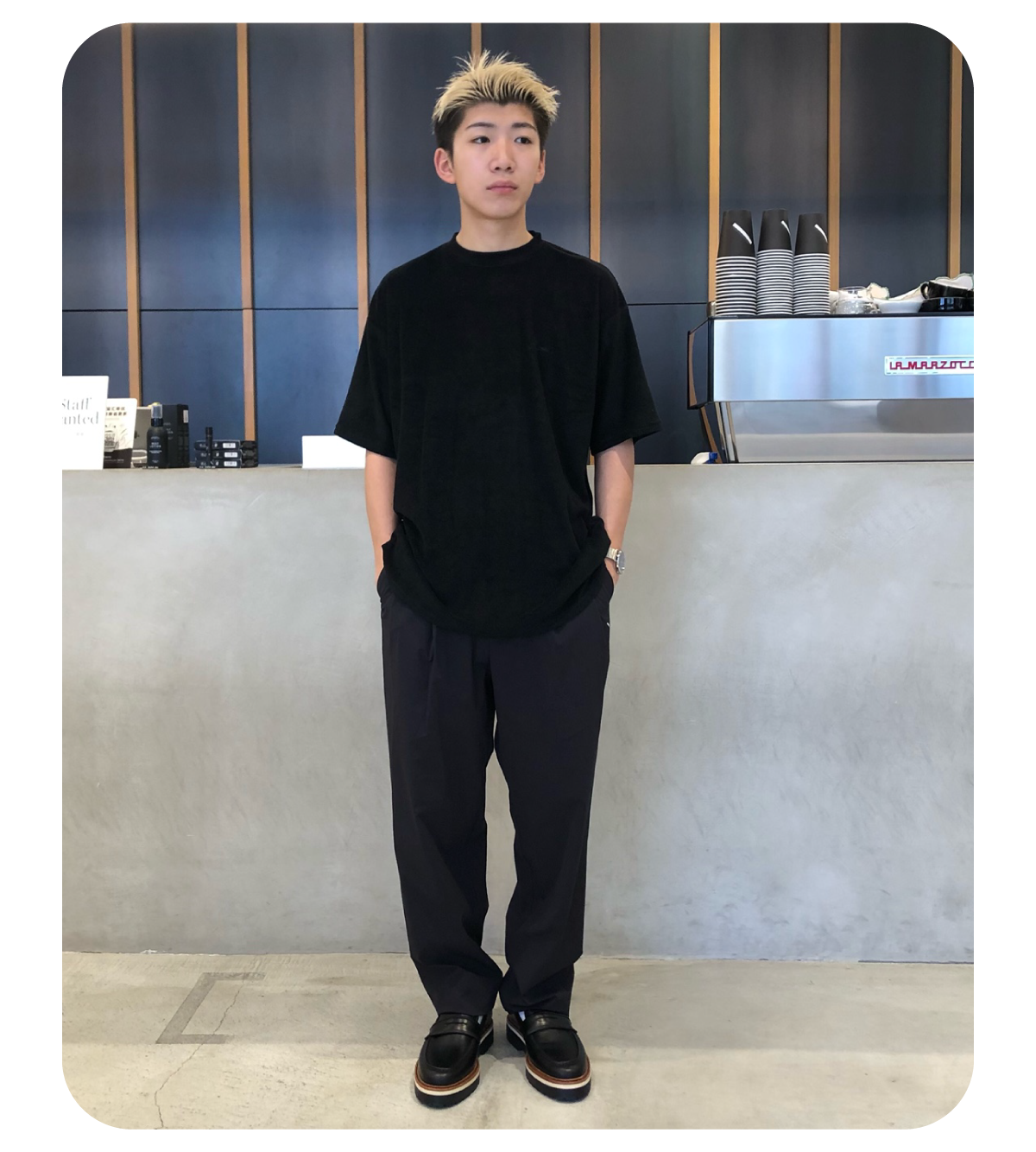 趣味は息子と一緒に音楽鑑賞と散歩です!アパレルに勤める前は、バリバリのバンドマンだったので少しだけですが、バンドマンのエッセンスを入れてます!いくつになってもファッションを楽しんでいきたいです!