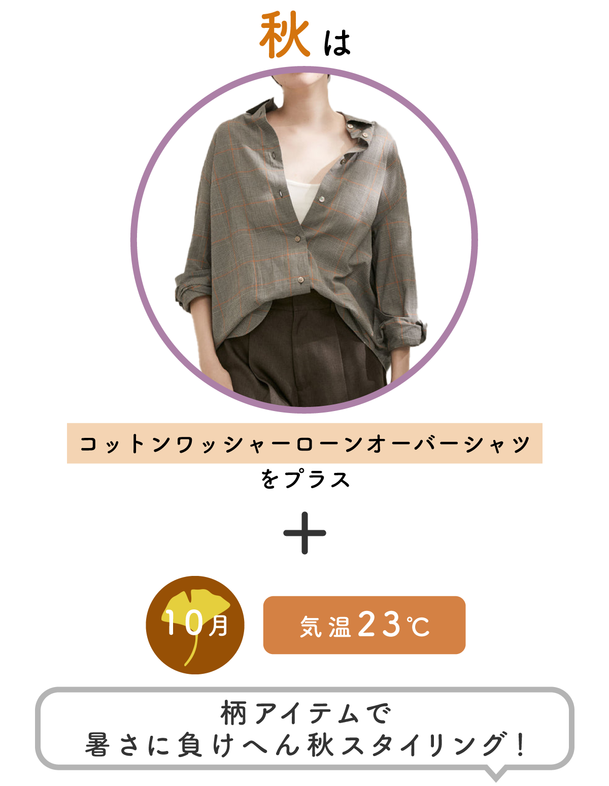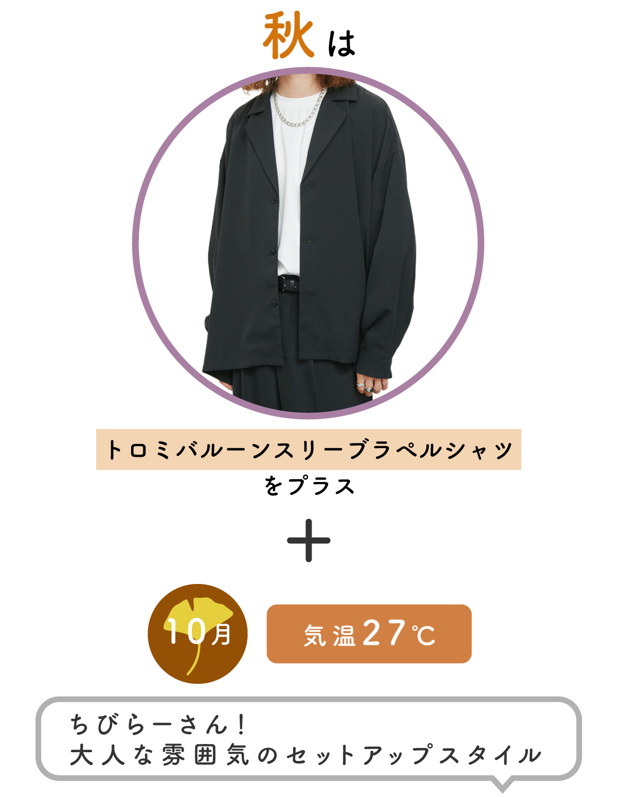 暑さが少しずつ落ち着いてくる9〜10月ですが、まだまだ半袖で過ごせる日がありますよね!けれど夏とは違う落ち着いた雰囲気が欲しい人も多いと思います!