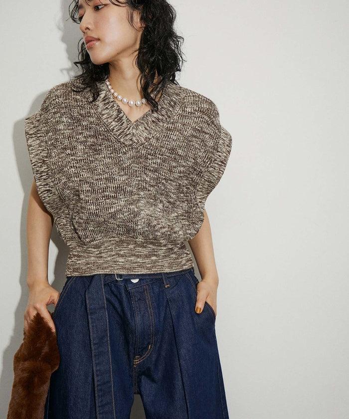畦編みの表情感がスタイリングを格上げしてくれる、すっきりとしたVネックのニットベスト。一枚でノースリーブプルオーバーとしてはもちろん、シャツやワンピース、Tシャツとレイヤードするような新鮮な着こなしをぜひ。
