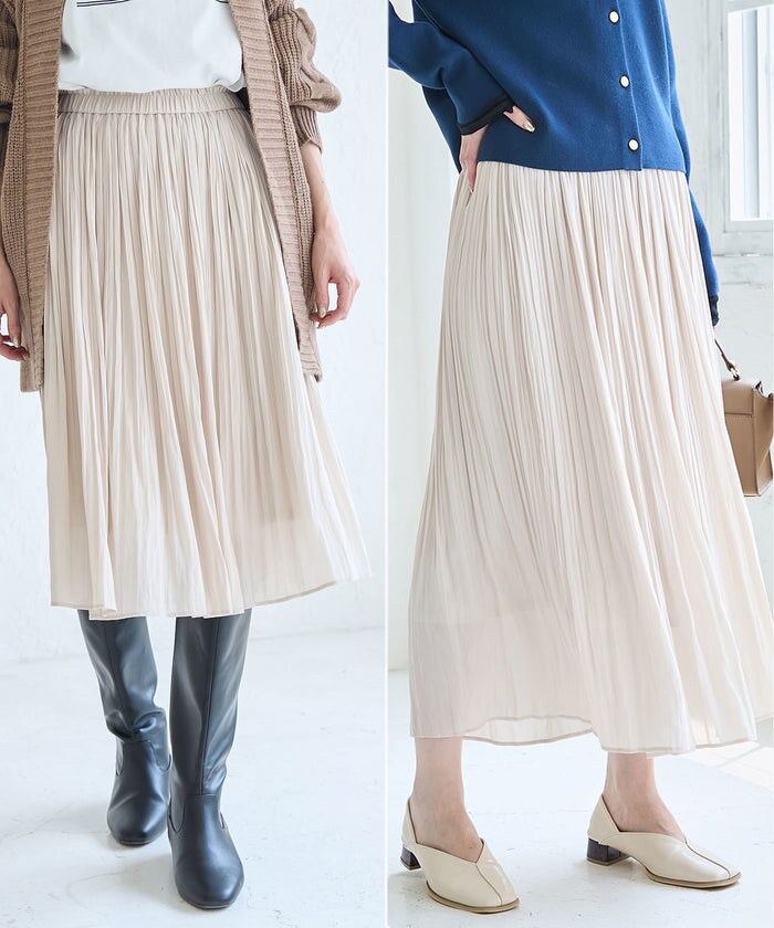自分好みのサイズをチョイス!!人気の着丈が選べるシリーズ。広がりすぎず、ストンとした落ち感で大人な印象に。総ウエストゴム仕様で着心地らくらく。