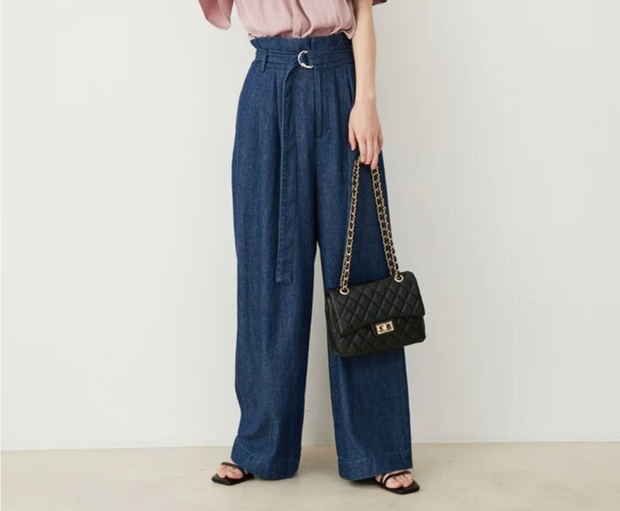 シーズンレスで活躍するライトオンス(軽い)のデニム。さらっとした肌触りのコットン素材で、ご家庭での洗濯機洗いが可能。Tシャツからブラウスまで、どんなトップスとも合わせやすくて◎