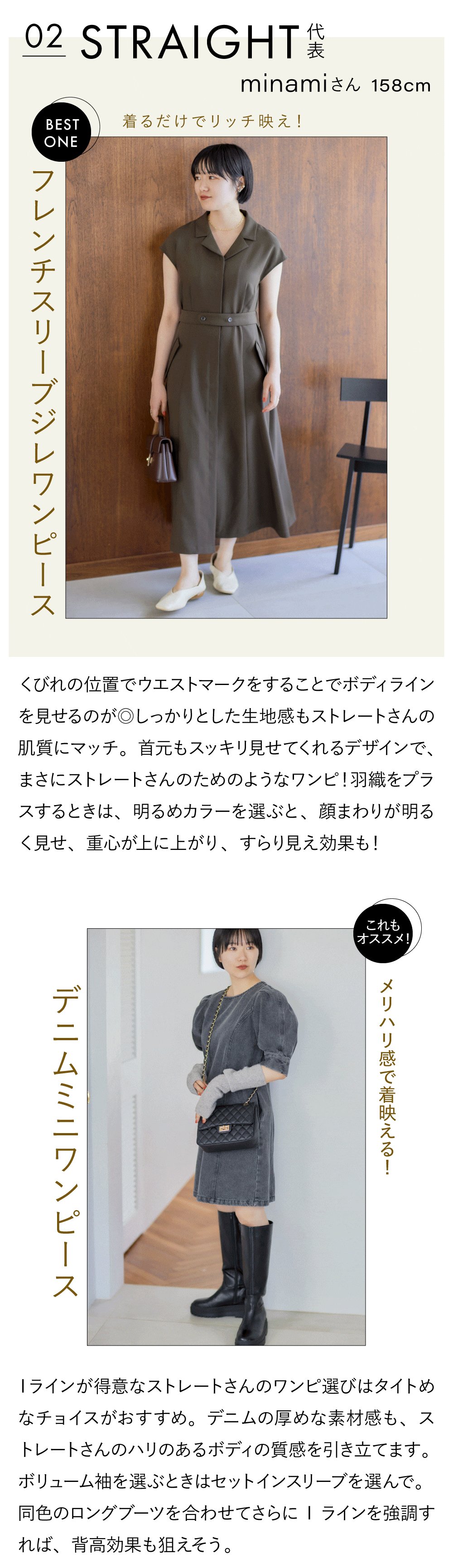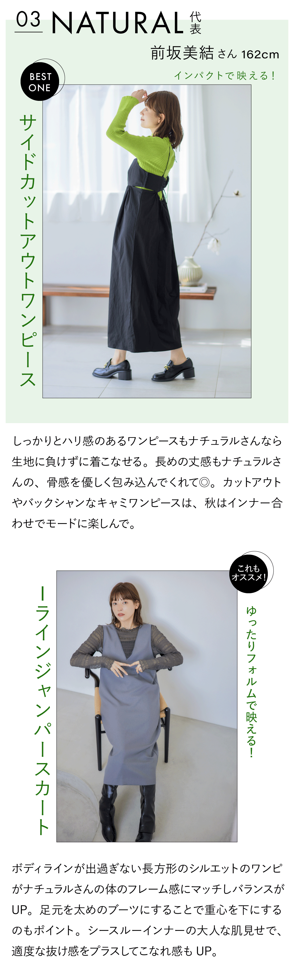 【骨格&身⻑別】着映えワンピ・秋の正解! 2023.09.20 夏→秋。アイテム選びが難しいスイッチシーズンに、やっぱり頼れるのがワンピース。何にも考えなくても、着るだけで着映える!見違える! 骨格&身長別にベストなワンピを紹介します。 まずは自分の骨格タイプを診断 ⬇︎ 骨格 WAVE さん 骨格 STRAIGHT さん 骨格 NATURAL さん ウェーブさんおすすめワンピース VIS 【選べる着丈】袖シャーリングドッキングワンピース【洗える】 ¥5,382(税込) 30%OFF VIS 【セットアップ対応】マーメイドキャミワンピース ¥3,625(税込) 50%OFF ストレートさんおすすめワンピース VIS 【洗える】デニムミニワンピース ¥4,450(税込) 50%OFF VIS 【2WAY】フレンチスリーブジレワンピース ¥4,613(税込) 40%OFF ナチュラルさんおすすめワンピース VIS 【防シワ】パウダリーツイルIラインジャンパースカート ¥3,460(税込) 50%OFF VIS 【洗える】サイド開きロングキャミワンピース ¥3,625(税込) 50%OFF ワンピース一覧はこちら ブランドTOPはこちら 美得プライス|女性らしさと美しさが賢く叶う。お値段以上のキレイ見え。 毎日のスタイリングに、妥協しない“キレイ”を、賢くお得に。 女性らしさ・スタイルアップ・上品さを、手に取りやすいプライスで叶えるVISの「美得プライス」トップス。 今買って春まで長く使える、お値段以上の優秀な7アイテムを揃えました。 2025 WINTER SALE MAX50%OFF!狙い目アイテム多数登場のWINTER SALEがスタート♪ この冬大活躍のアウター、ニット、カーディガンなどなど手に入れていきたいアイテムまでプライスダウン。 冬のお出かけが楽しくなるアイテムをぜひお得にGETしてくださいね。 Winter Dress-Up Moments|「ワンピース×アウター」冬のお出かけLOOK 寒さが深まる季節にぴったりな、旬のアウターとワンピースコーデをたっぷりご紹介! 大人女子に似合う洗練された着こなしから、デイリーにも休日にも使える実用的スタイルまで、1枚で存在感のあるワンピースに、着回し力の高いアウターを合わせたトレンドルックをVISスタッフが提案します。 今年らしいレイヤードやカラー使いで、冬のファッションがもっと楽しくなるアイデアをお届け。 BAG COLLECTION|この冬に欲しい!注目バッグ大集合 VISの2025年注目の"トレンド&定番”バッグを一挙にご紹介! 通勤の快適さとファッション性を両立させる「通勤バッグ」からVISならではの高見えトレンドデザインの「お出かけバッグ」、 さらに新作からWEB限定までこちらのページであなただけのお気に入りバッグが見つかります! 洗練されたデザインと機能性も備えたバッグは、これからの季節にあなたの毎日をスマートにアップデートしてくれるはず。 ときめき♡HOLIDAY COLLECTION starring Aki Suda 超ときめき♡宣伝部 菅田愛貴さんが着こなすときめき♡ホリデーコレクション 華やかムードに包まれて心が躍る冬は、とっておきの洋服を着て、思い出を彩ろう! ふわふわ素材やリボンディテールなど、この季節にぴったりなアイテムは要チェックです。 Winter Glow TOPS|キーワードで探す「冬の旬トップス 」 冬の気配が深まるこの季節。ふんわり暖かく、それでいて「今っぽさ」も叶える――そんな“冬の旬トップス”を集めました。 #グリッド #ビジュー #パール #デザインのキーワードごとに素材やディテールもチェックできます♪ アウター着ても、脱いだ後も主役級の存在感ばかり。重ね着だけに頼らず、1枚で冬コーデを格上げする、この冬おすすめのトップスをあなたに。