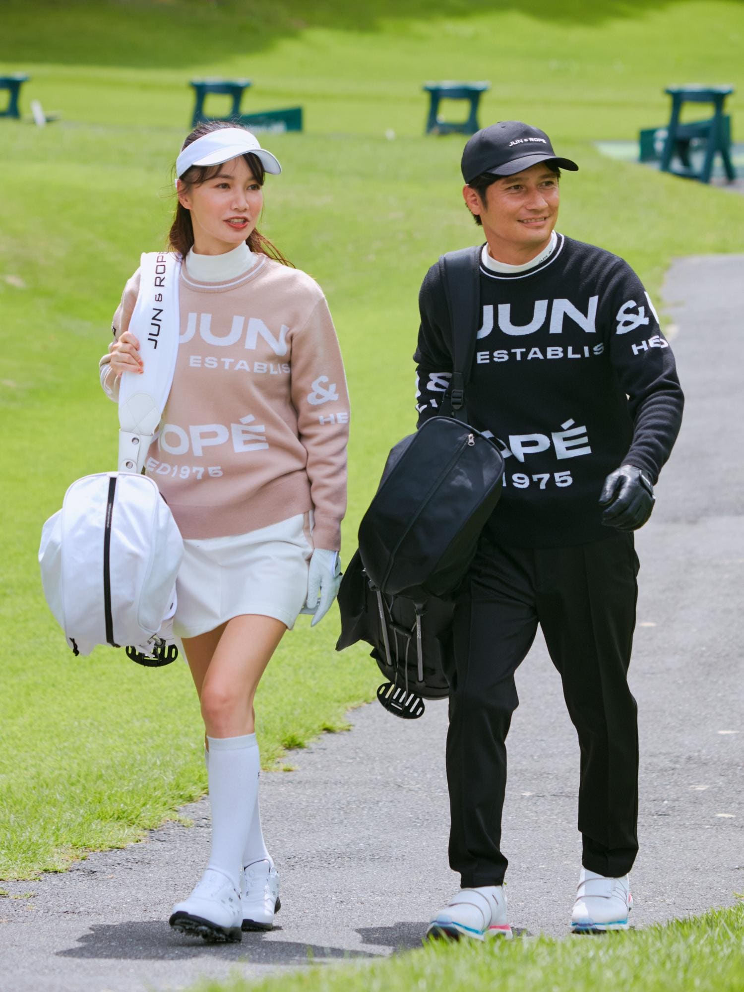 ペア感もたっぷりの、おそろいモノグラムコーデ。他と差がつく、大人のスタイリッシュゴルフに。