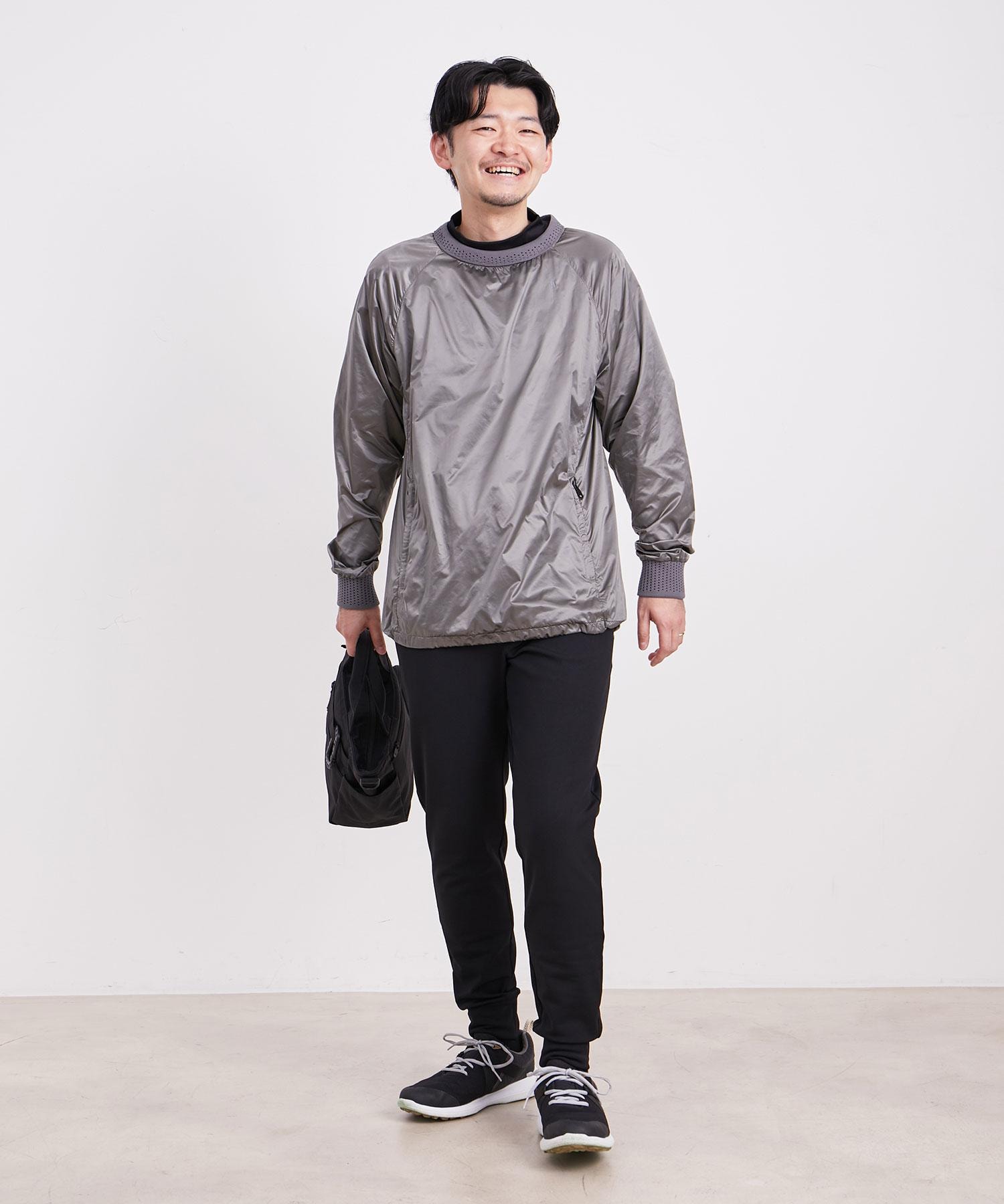 「ゴルフウェアを選ぶポイントはリラックスできる服装。ラウンドの頻度も多くはないので、打ちっぱなしや練習にも着ていけるラフなスタイルが好きです。このフーディージャケットはシンプルなので普段も着用できるのも魅力ですね。」