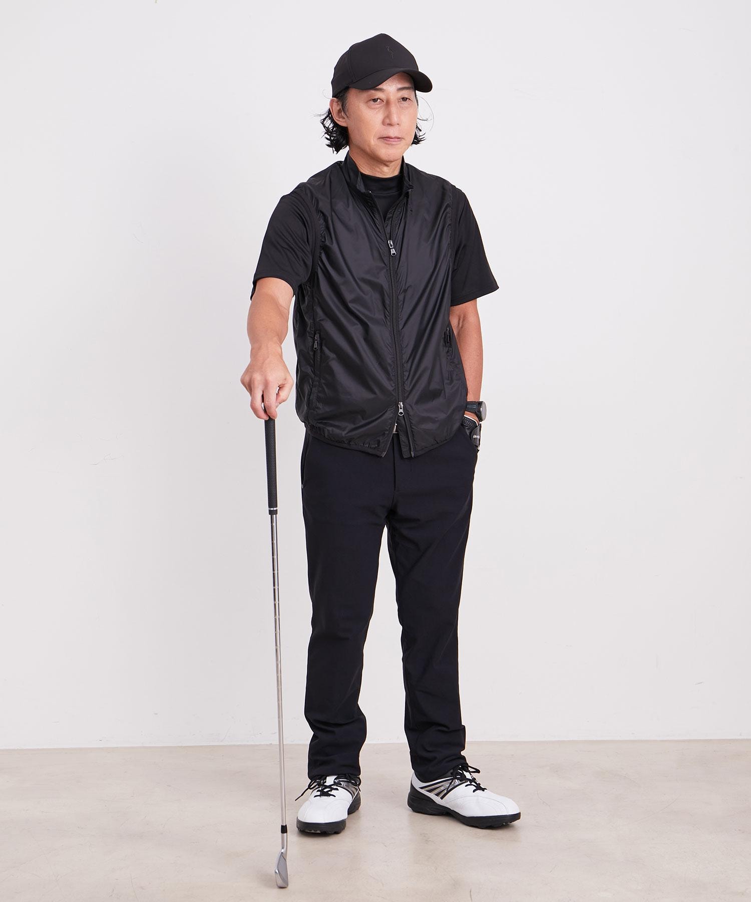 「ゴルフウェアを選ぶポイントは、丈と身幅のバランスが合うかどうか。フィット感を重視すると丈が短かったり、着丈を合わせると身幅がゆるかったりするので、ちょうどよいバランスを重視しています。このベストは軽くてさっと羽織れる上に、ちょうど良いフィット感が絶妙。」
