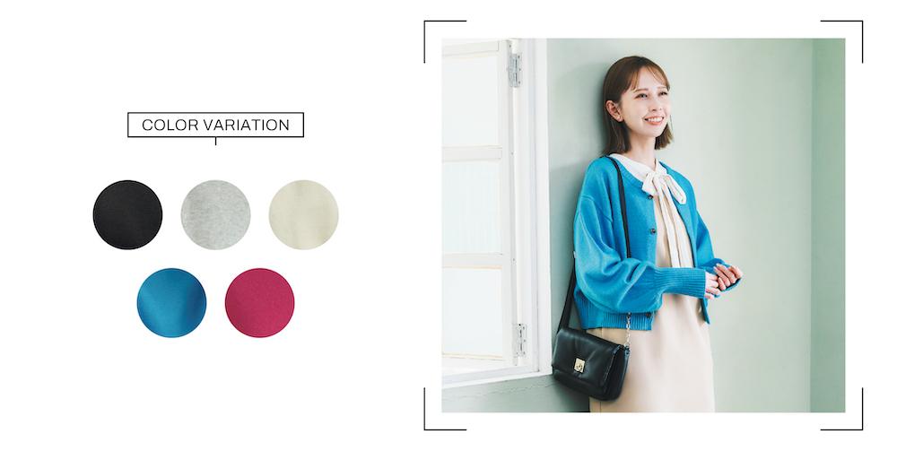 長めの袖口とふんわりとしたシルエットが女性らしいポイントに。