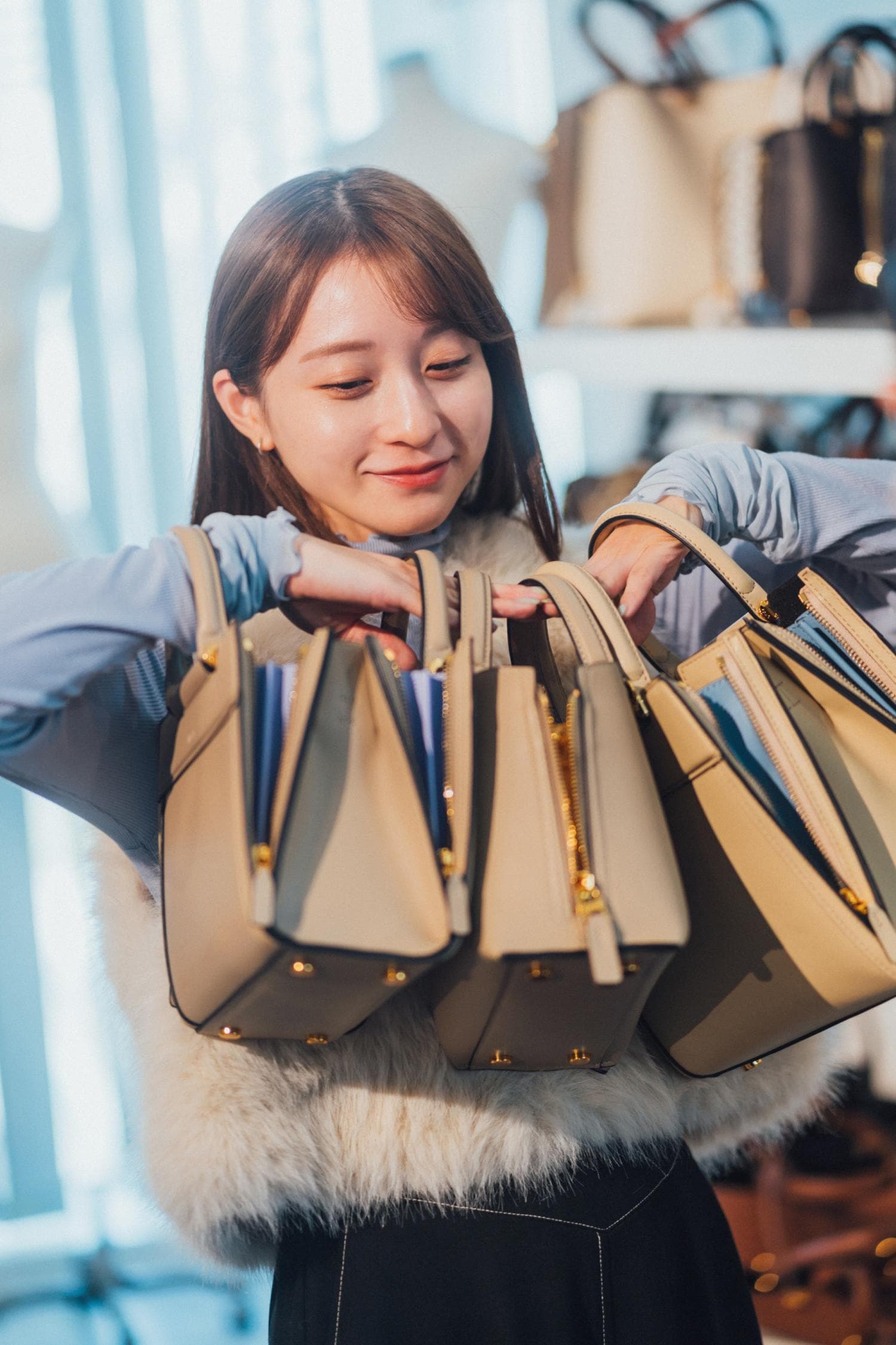 洋服中心に選んでいきながらも、小物も抜かりなくチェック。