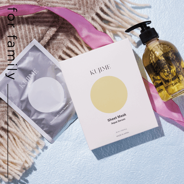 いつものスキンケアにプラスするだけで手軽に使える〈KUJIME(クジメ)〉のAqua Serum Sheet Mask。 エイジングケア※に効果的な成分を贅沢に配合した、美容液1本分(30mL)の超浸透モイストリッチマスクです。 さらにシートにもこだわり、肌へピタッと密着し保湿をサポートできる特殊素材を採用。 忙しい日々を過ごす方でも、スキンケアのチカラを引き出す贅沢マスクによって十分な肌のケアと潤いを叶えてくれます。 ※年齢応じたお手入れ