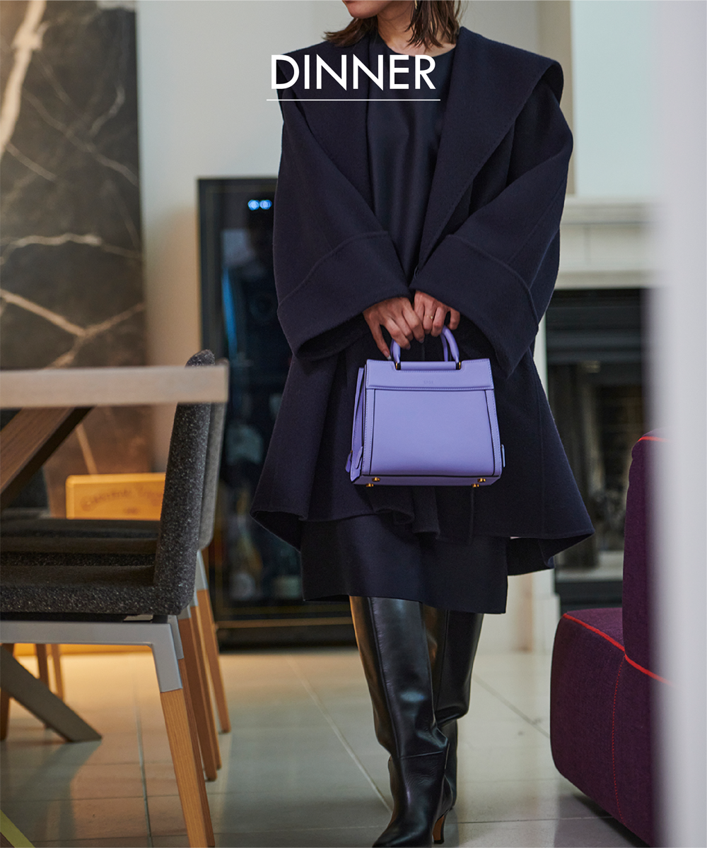 夜の食事も想像しながら、「Y BAG Mini」のキルティングバッグを。