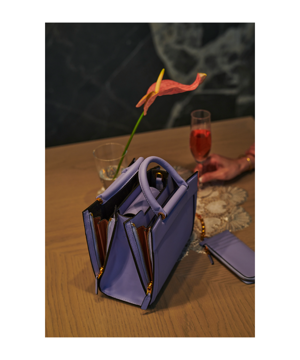 金具やコバ、付属使いがラグジュアリーな印象を与え手元を彩り、きれいに見せてくれるからデートに勧めたいです。 隣に自立して凛と佇みます。