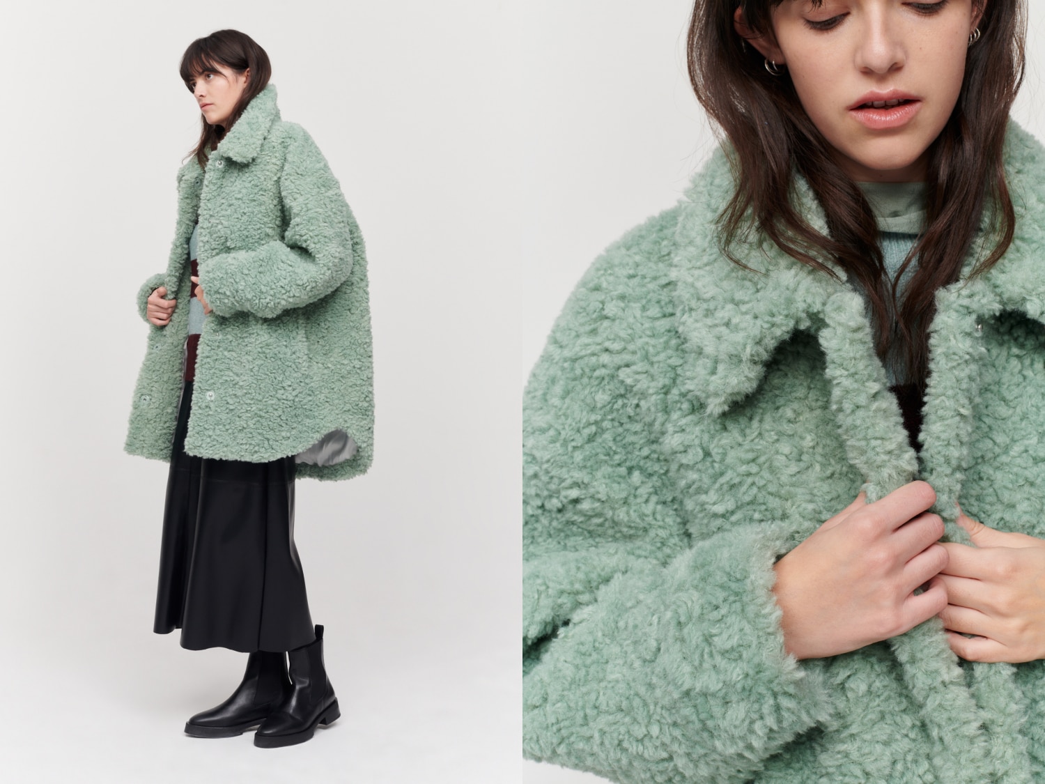 ブランドコンセプトである ”動物保護” をモットーにエコファーを採用したポップなアイテムを提案しています。今回は2023AWのラインアップよりADAM ET ROPÉのモードなスタイリングと合う、エコファーならではのカラーリングやデザインを特別にそろえました。