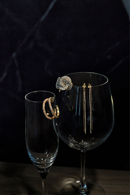 クリスマスムードを盛り上げてくれるアクセサリーはカットガラスでクラシックなビジューモチーフをトップに使用した3シリーズ。