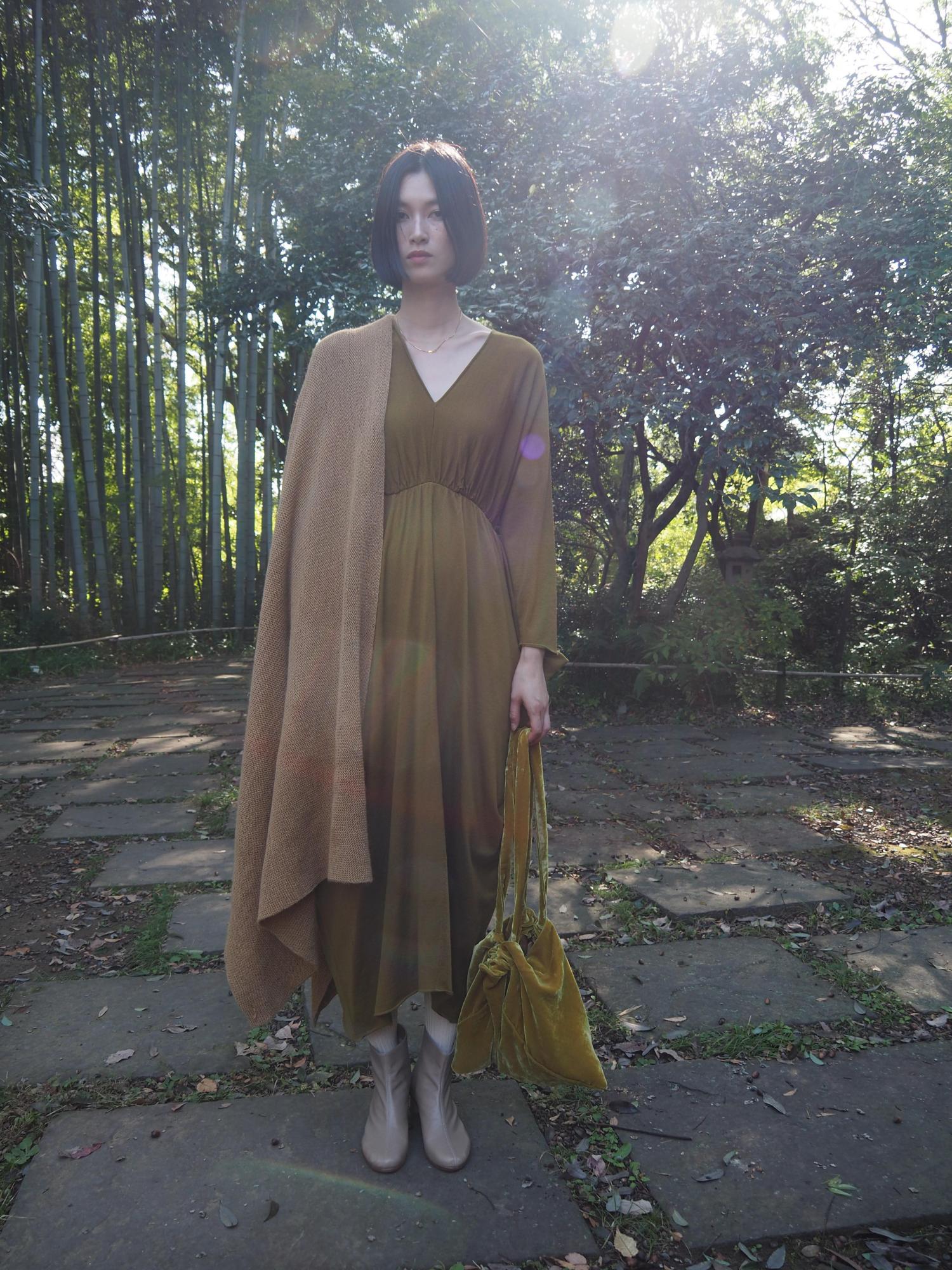 梳毛14ゲージで編み立てたニットドルマンスリーブドレス