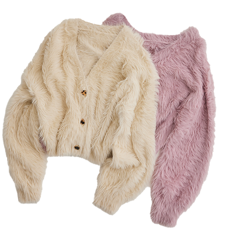 ふわふわな毛足長めのニット素材。