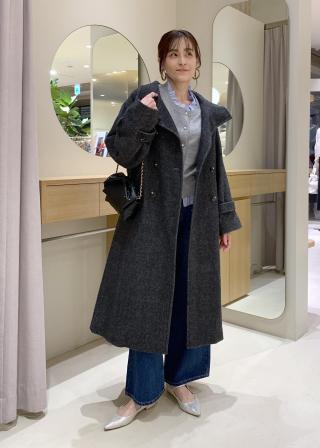 (中) ROPÉで定番人気のプレミアムカシミアコートに、ショート丈が新登場!やわらかな質感と上品な光沢感が、ソフトな肌質にマッチします。ウエーブが得意なブラウスや、ふわりと揺れるエアリーなスカートとも相性バツグン。この冬、ウエーブ必見のアイテムです。