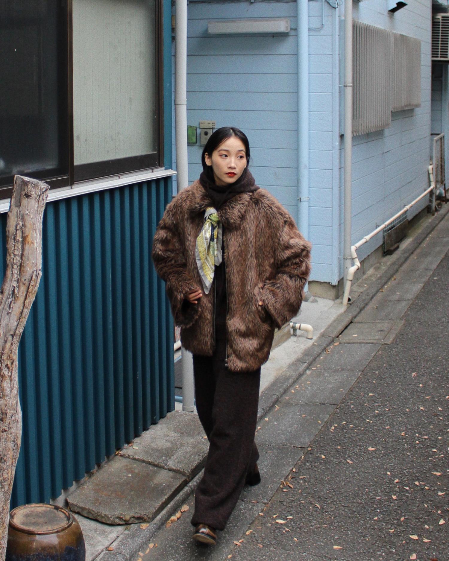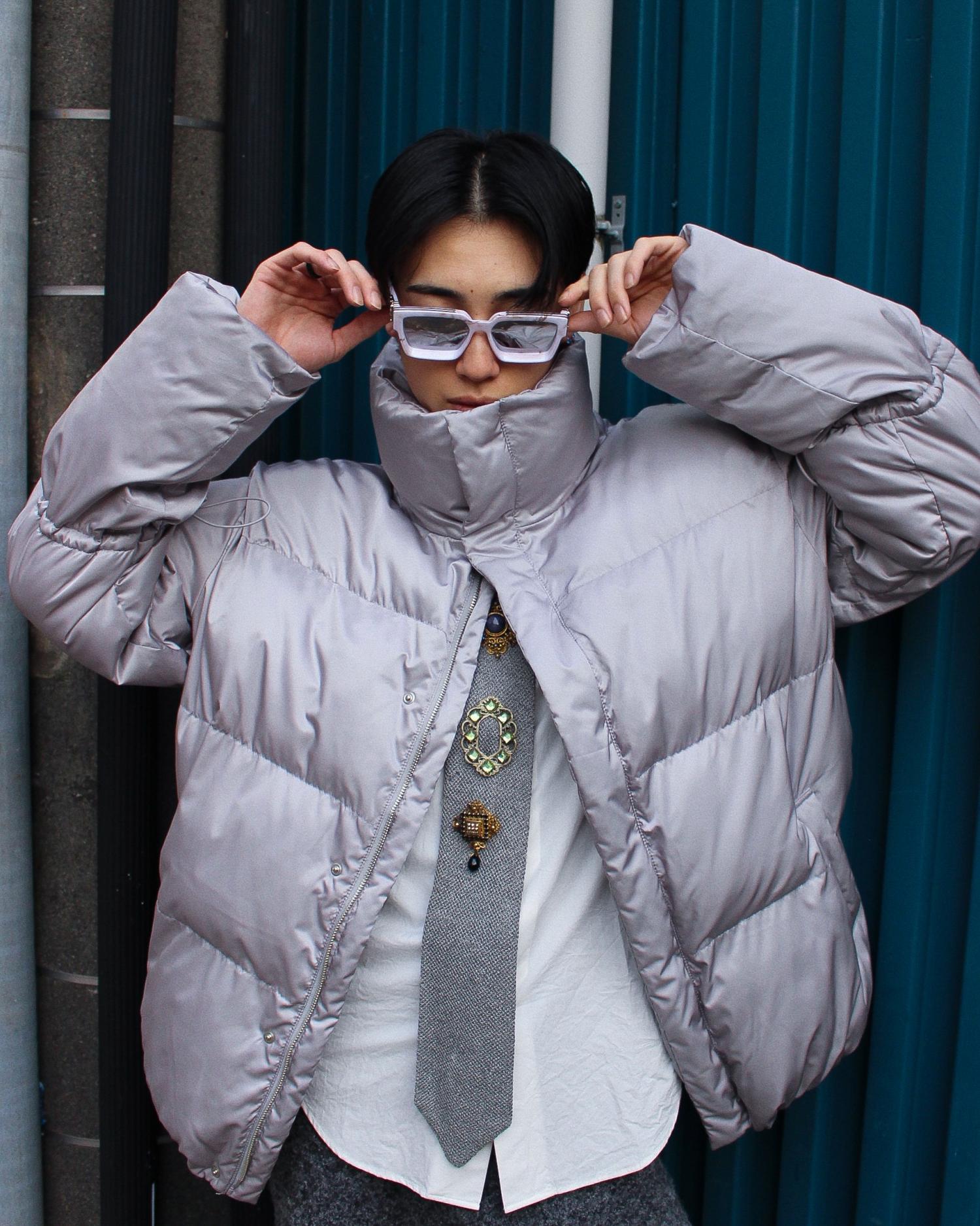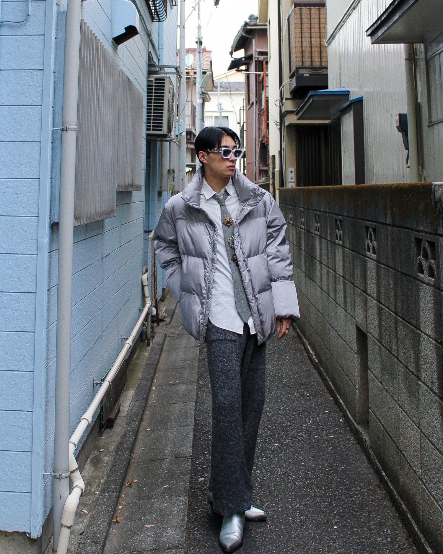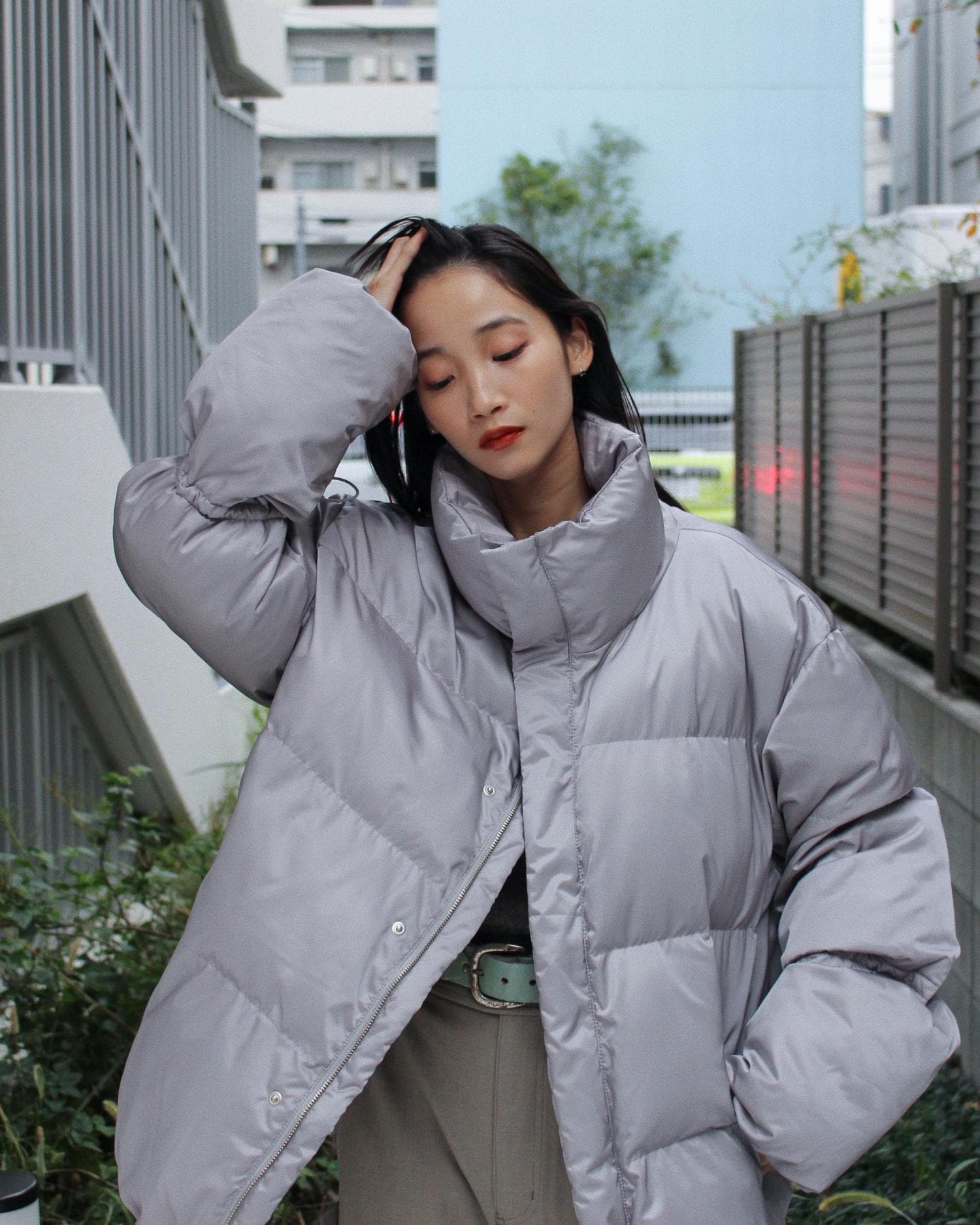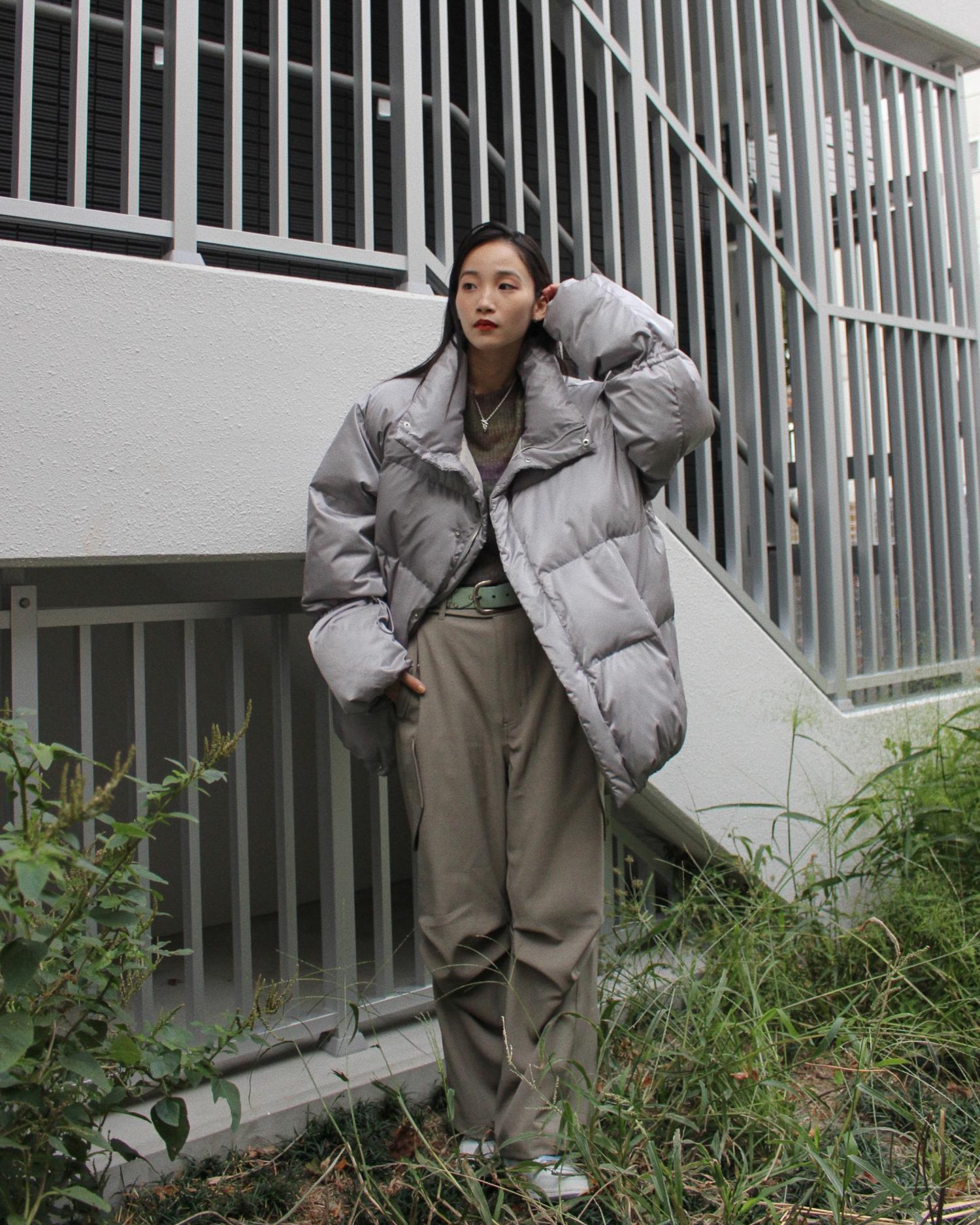 ボリューミーなシルエットのアウターをメインにトップスとボトムスは抑えめのカラーに。モードなアイテムと合わせても可愛いなと思ったのですがベルトを差し色に同系のブルーがポイントに入っているスニーカーを合わせてカジュアルにまとめました。