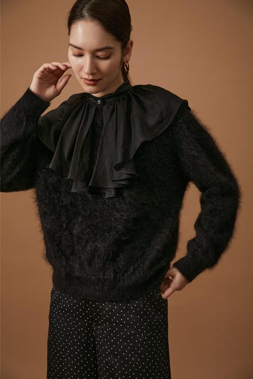 纏うだけで華やかさを演出できるカシミヤファー加工のラグジュアリーな風合いを楽しんでいただきたい1着です。
