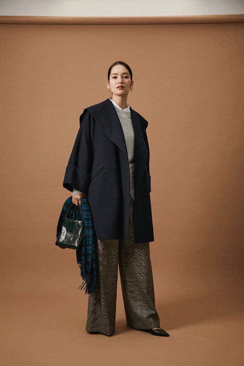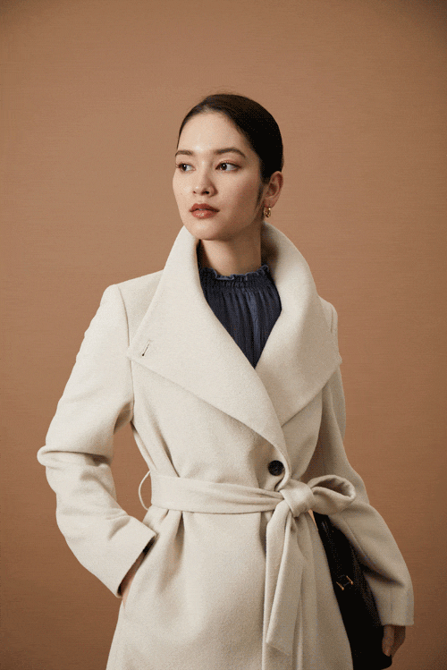 スタンドカラー/オープンカラー風の2WAYの衿元で着こなせる!ROPÉ定番冬のウールコート。