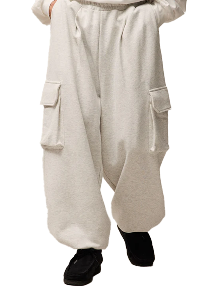 全体的にボリューム感のある90年代を感じさせるオーバーシルエットで立体的なサイドポケットがポイントの裏毛素材のカーゴパンツです。裾にはゴムのドローコードがあり、スタイリングに変化を出せるアイテムです。