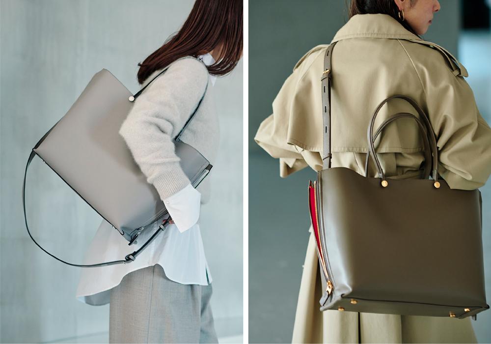 厚めのアウターでもゆったり持てて、ものの出し入れがしやすい 設計になりました。