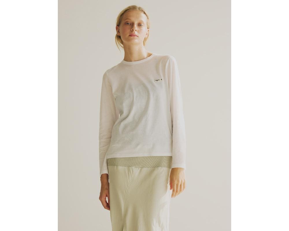 左胸にagnès b.のロゴが刺繍されたワッペンがポイント。