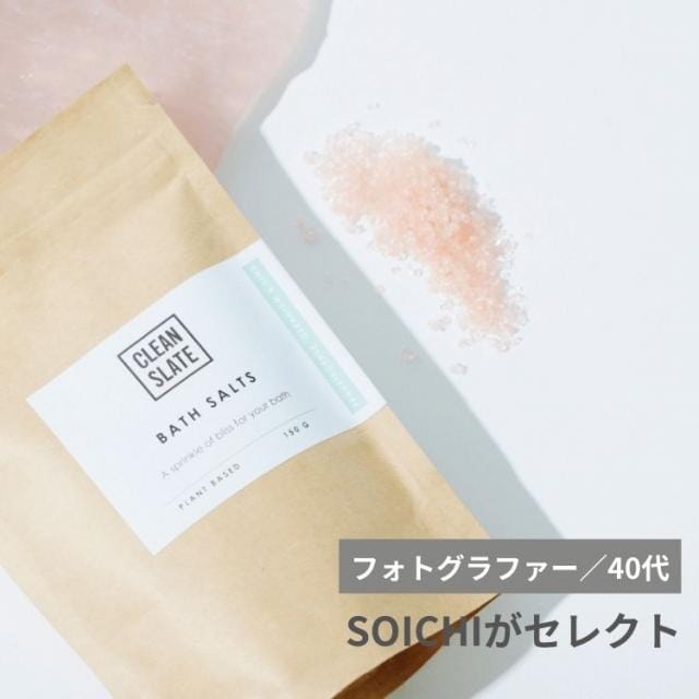 連日の撮影が続くと疲れが溜まりやすくなるので、バスアイテムは毎日の必需品。自宅のバスタブでも良い入浴剤があれば、いつもよりリラックスできますよね。入浴中のふとした瞬間に、ギフトの贈り主を思い出させられるのも素敵です。〈CLEAN SLATE〉はやさしい精油の香りで心身ともに癒やされますし、 今回セレクトした「FLG(99)」は淡いピンク色で バレンタインらしくていいなと思います。バスソルトなら、友人や仕事関係の方からいただいても気負わず受け取れそうです。