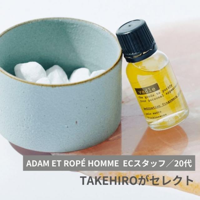 物心がついた時から香りものが好きで、メンズですが小さい頃は匂いのするねり消しを収集していたり……。年齢を重ねても好きなものは変わらず、お気に入りの香りを見つけるとついつい手にしてしまいます。〈vadle(バドル)〉の「メディテーションフレグランスストーン」は、香りが素晴らしいのはもちろんですが、ただ置いておくだけでもインテリアとして部屋を彩ってくれる点も魅力です。インセンスなども好きで普段から愛用していますが、フレグランスストーンは火を使用しないので安心して作業や趣味に没頭できる点もお気に入り。