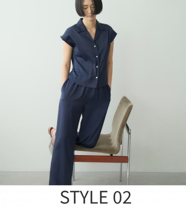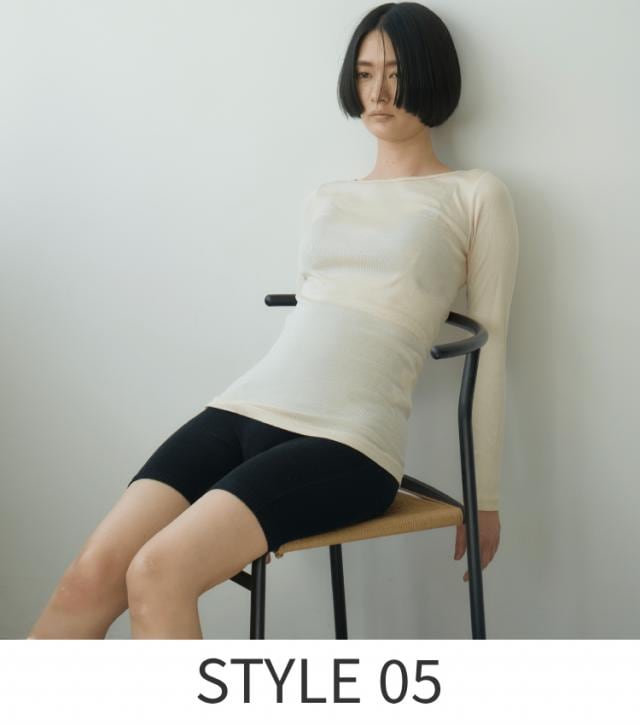 テンセル×カシミヤ×シルクの掛け合わせによって生まれるとろみのある滑らかな肌触りがとにかく心地良いセットアップ。たっぷりとした袖周りや腰まで隠れる丈感で、リラックスムードはあるけど、だらしなく見えずに体型を拾いすぎない配慮も嬉しいデザイン。蒸れ、冷えを防ぐ5本指に見えないシルクのシークレットソックスをプラスすれば、温活も完璧。