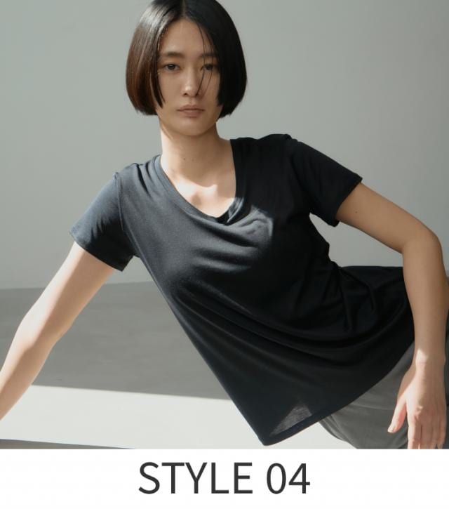 厳選したシルクを使い心地良さを追求した〈COCOONA SKINWEAR(コクーナ スキンウェア)〉のボーイズTシャツ。シルエットはコンパクトだけど、身幅はゆったりめなのでフィットしすぎない着心地の良さ。ほんのり透ける生地なので、ブラックでも軽やかさがあり、春夏でも軽快に着こなせます。
