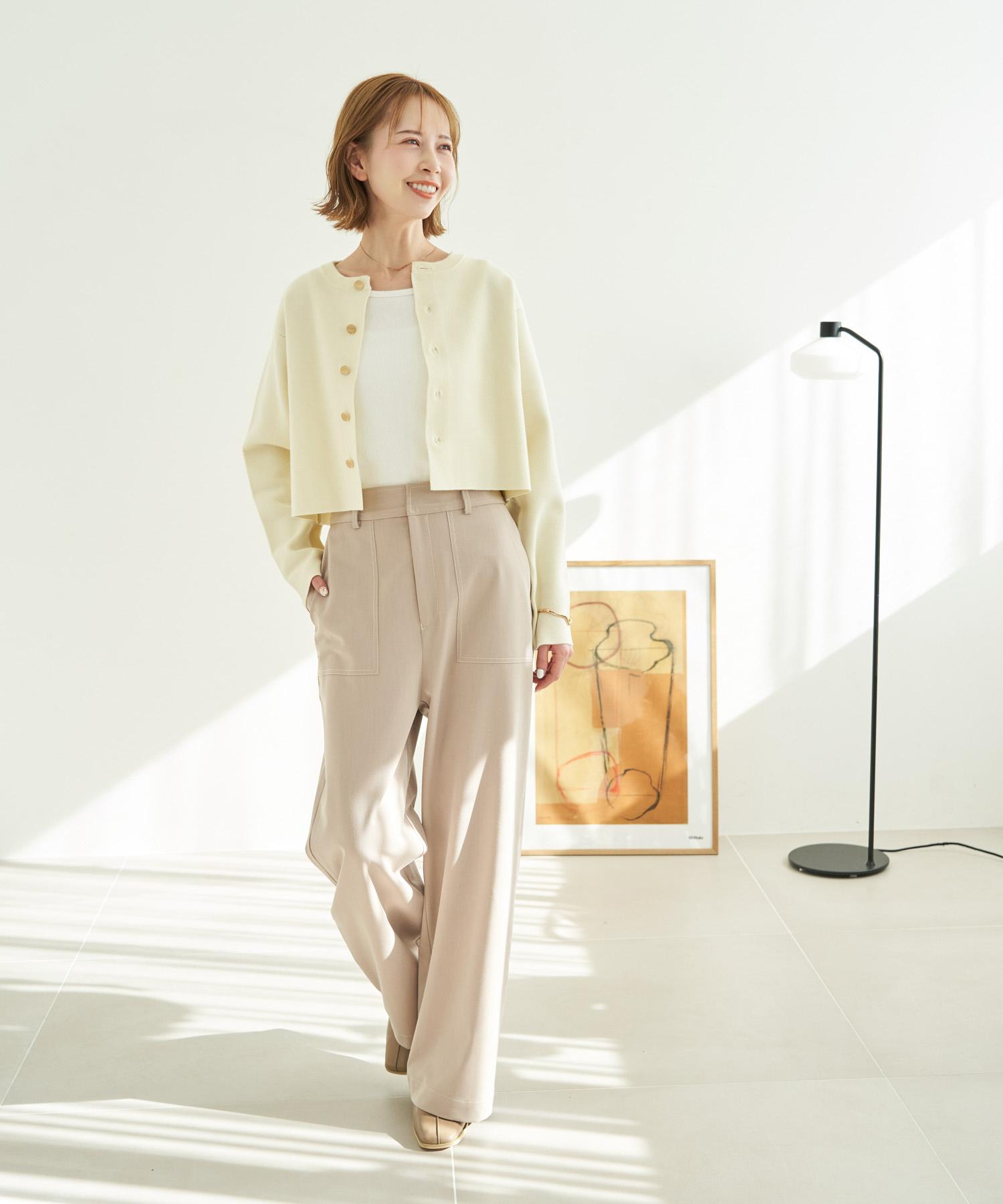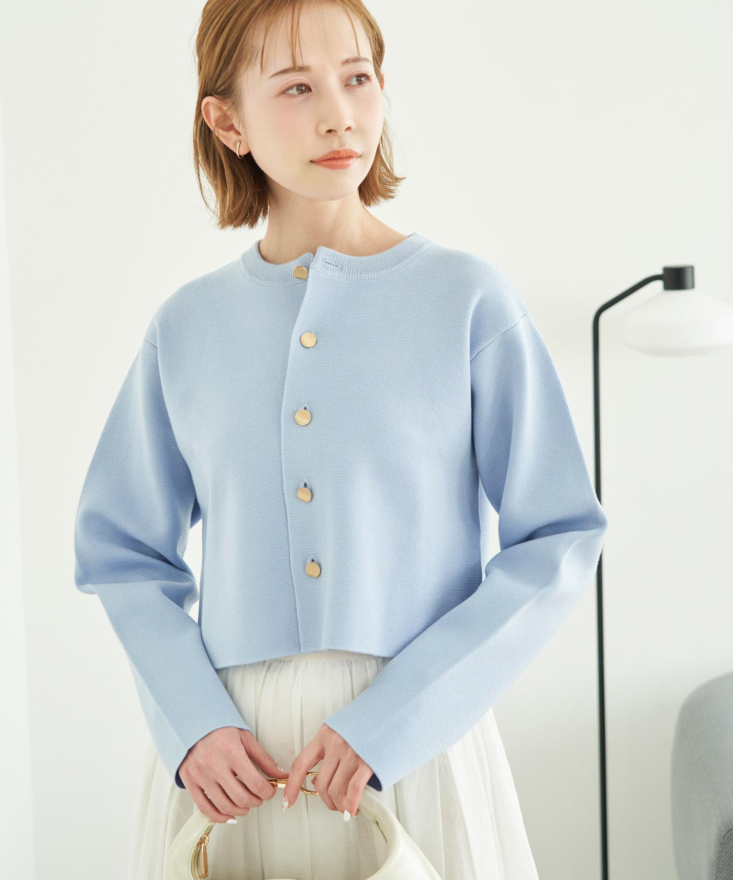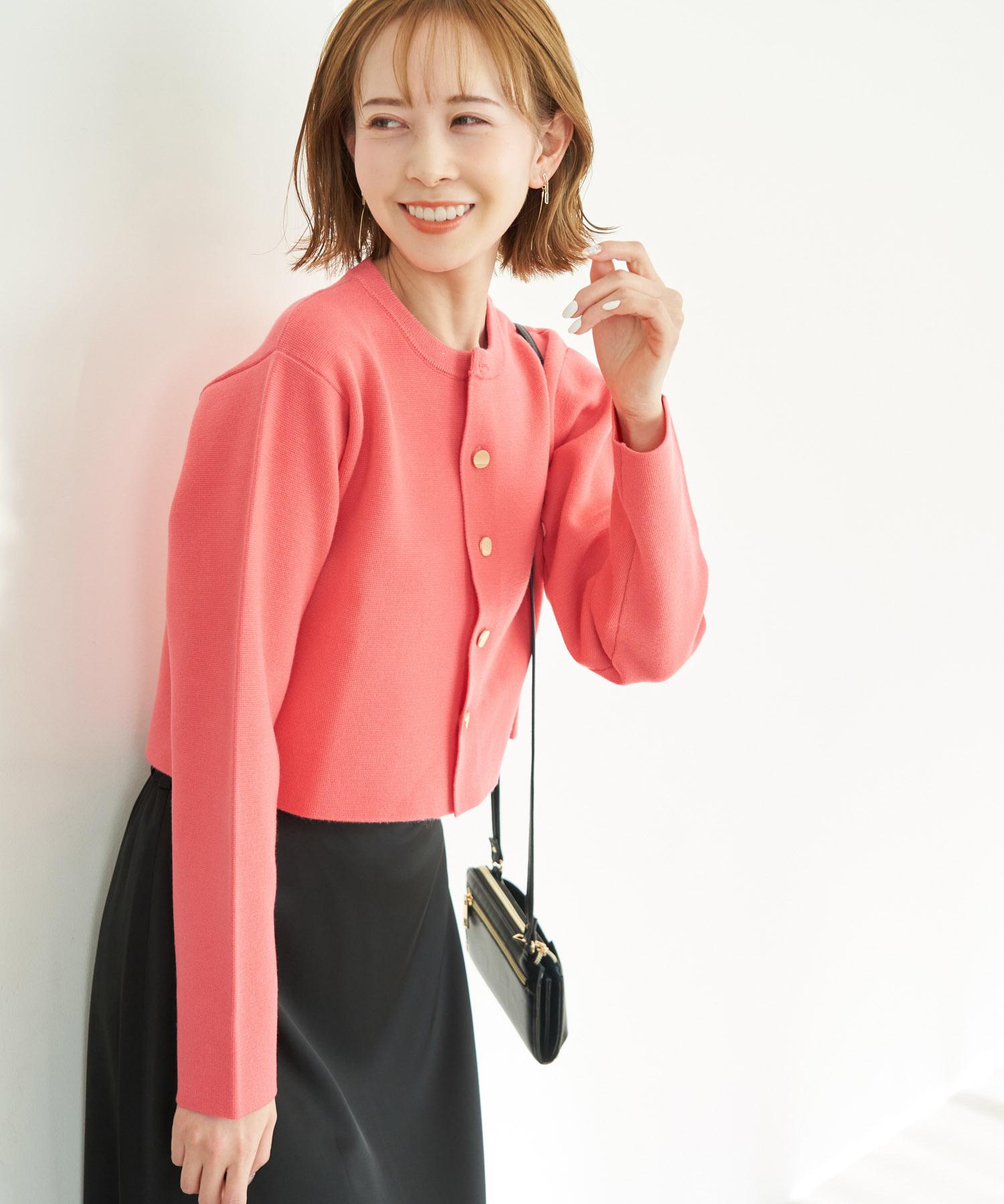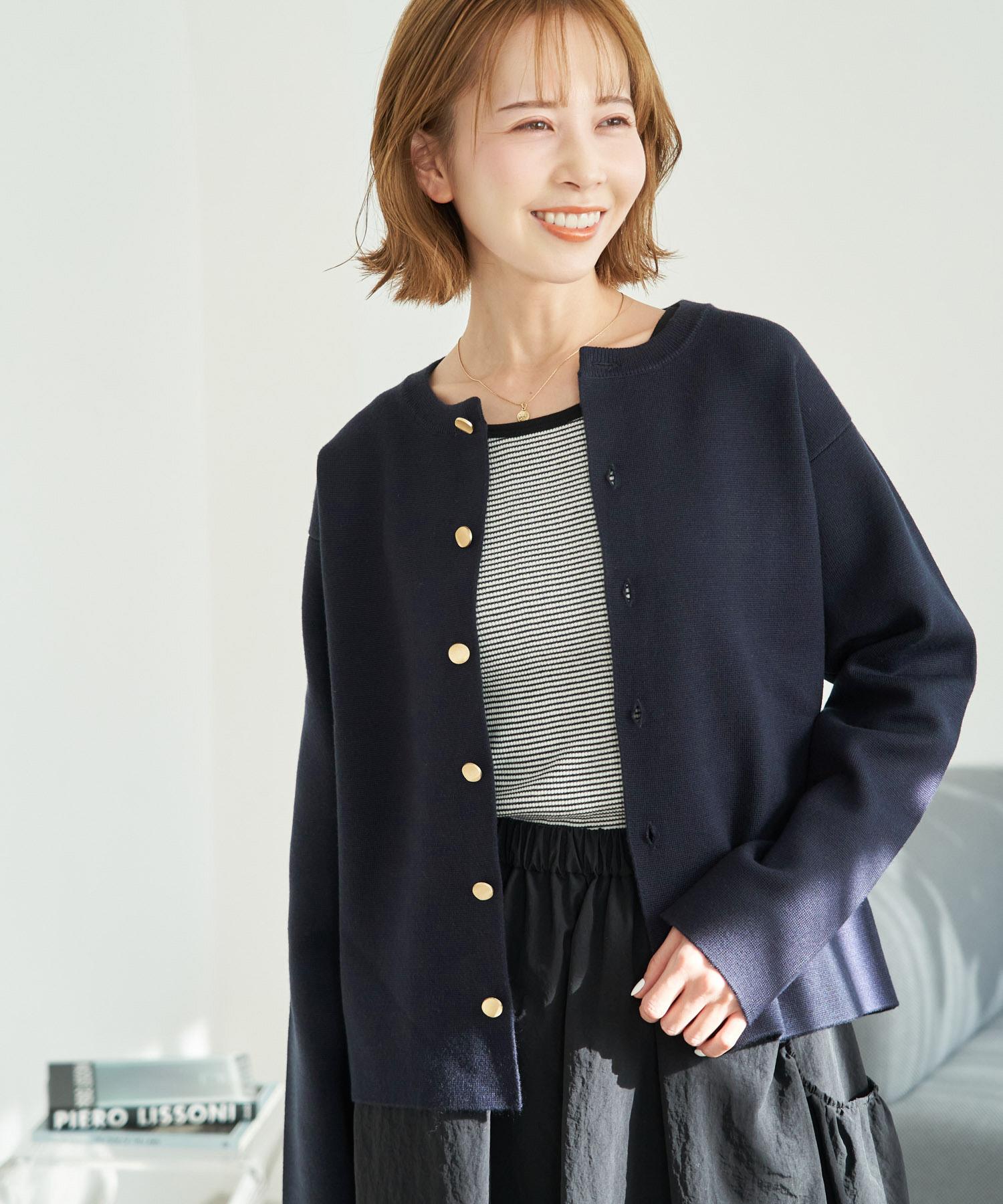 程良い厚みのミラノリブ素材のニットカーディガン。