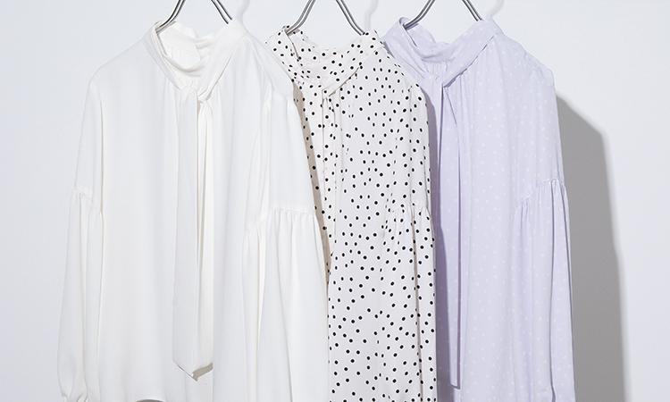 ViSオリジナルデザイン・柄のシャツワンピース、サイズ感にこだわったルーズシルエットシャツ、マルチウェイなボウタイブラウスなど全5型展開。