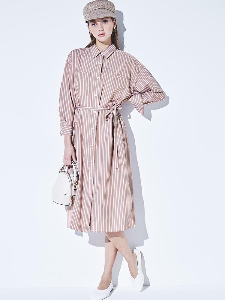 ドロップショルダーがこなれ感を演出してくれるベーシックなシャツワンピース。