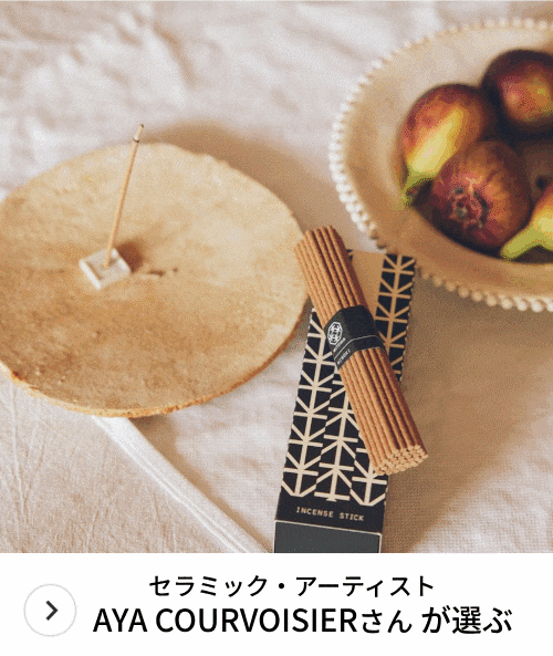 「お香立てはあまり持ってなくて、デザイン性があるものを取り入れたいと思い選びました。お香をさしていなくてもオブジェっぽい感じのビジュアルと絶妙な色味が素敵ですよね。パロサント置きとして使えるのも有難い!」(中川さん)