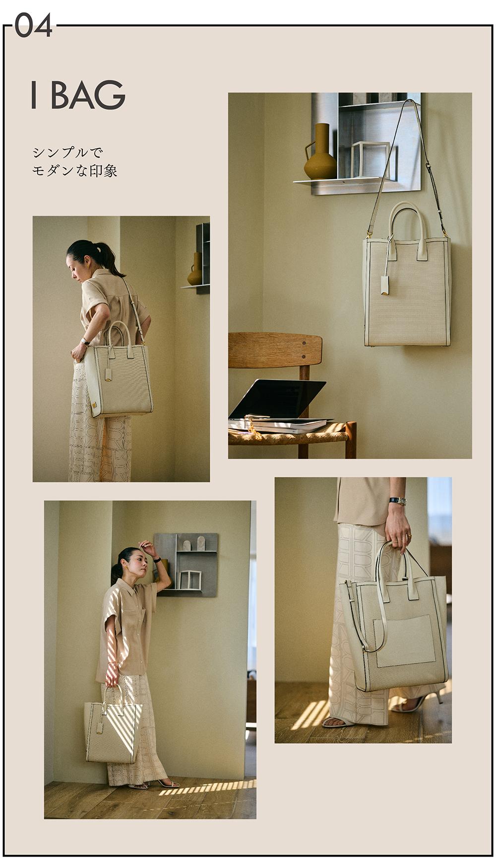 上品でシンプルな佇まいは知的な印象で通勤に特におすすめ。