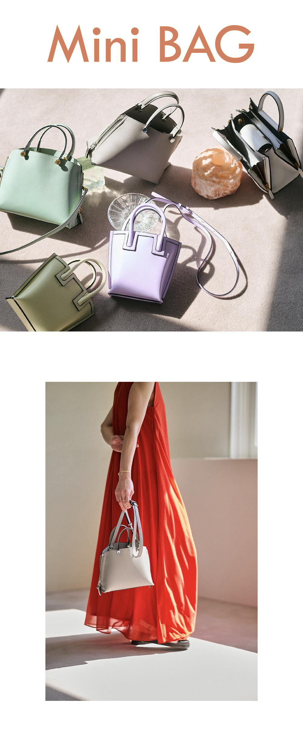 シンプルなデザインと遊び心のあるカラーリングのミニバッグをご覧ください。
