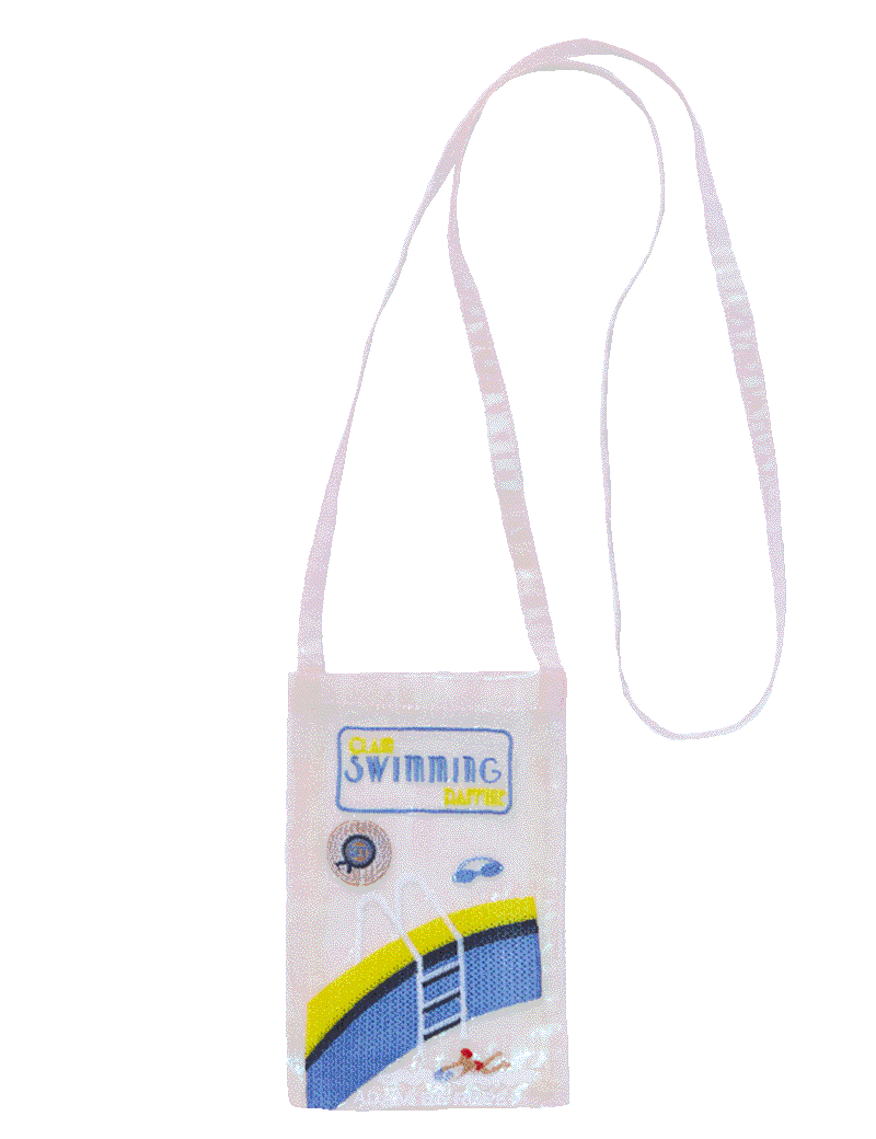プールサイドをモチーフにしたポシェットは、イヤホンやサングラスケースとして、バッグとセットでコーディネートするのもオススメ。