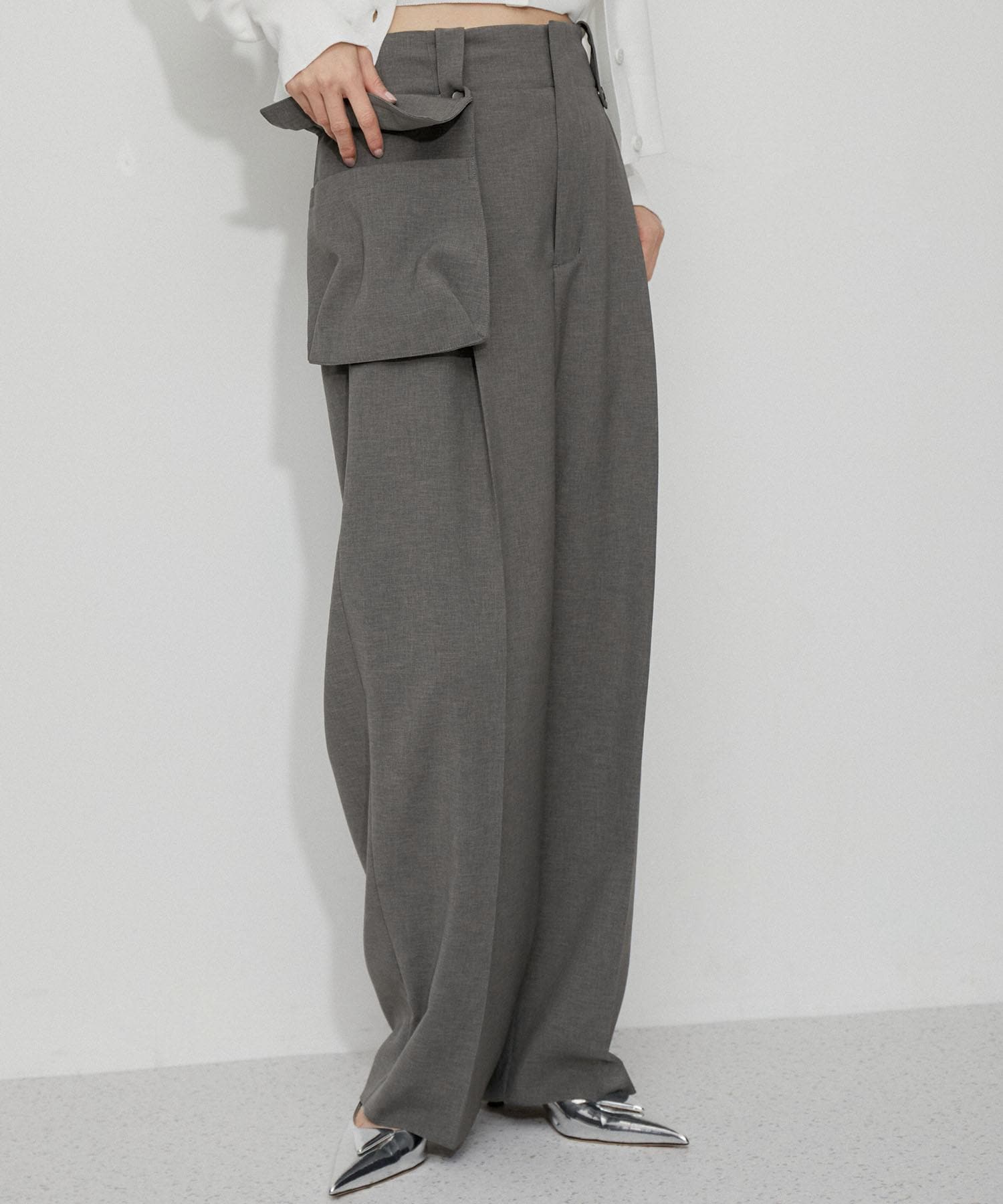 リラックス感のあるルーズシルエットが今っぽい、フロントデザインで着映えるイージーパンツ