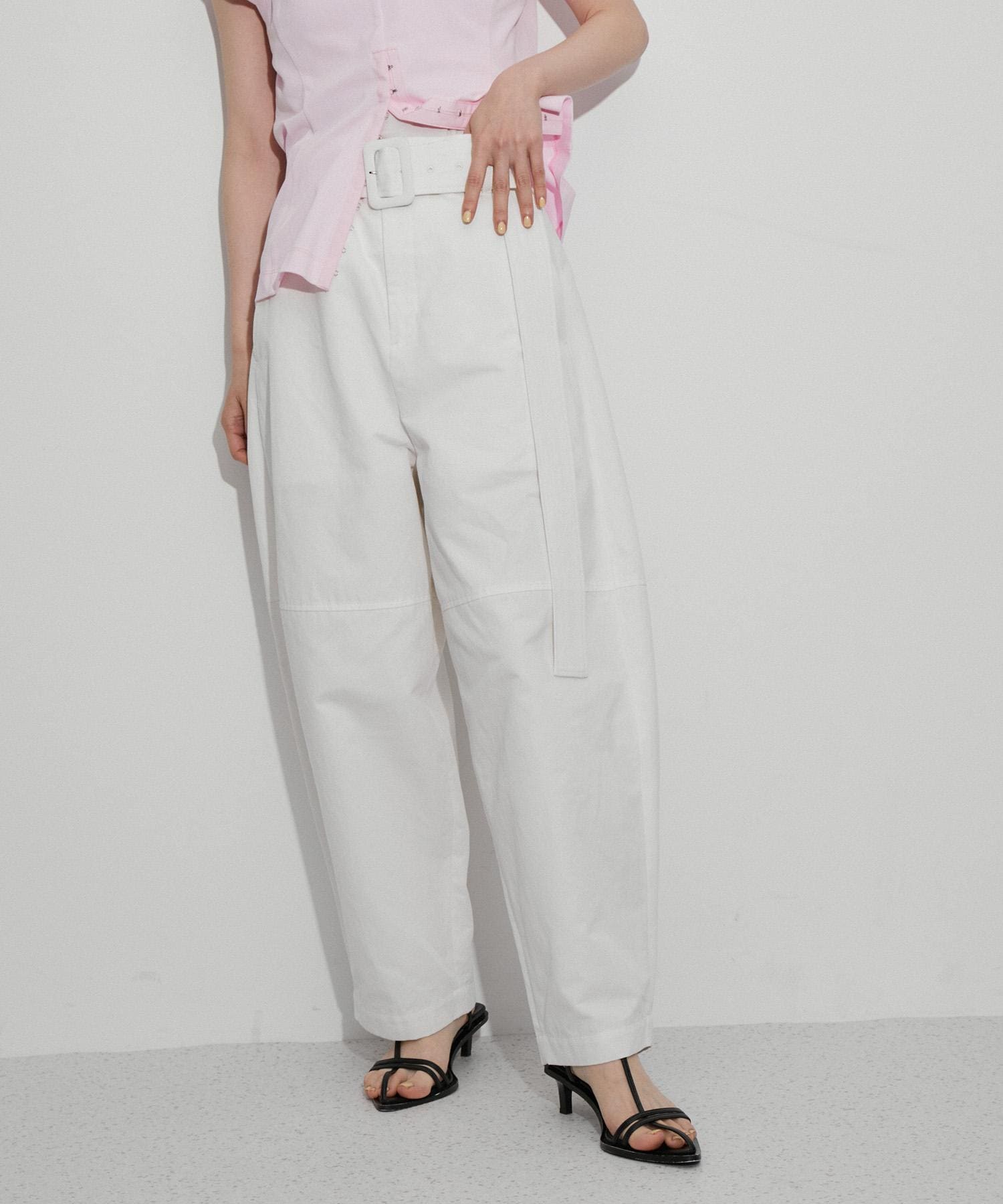 丸みのあるコクーンシルエットのカジュアルパンツ。