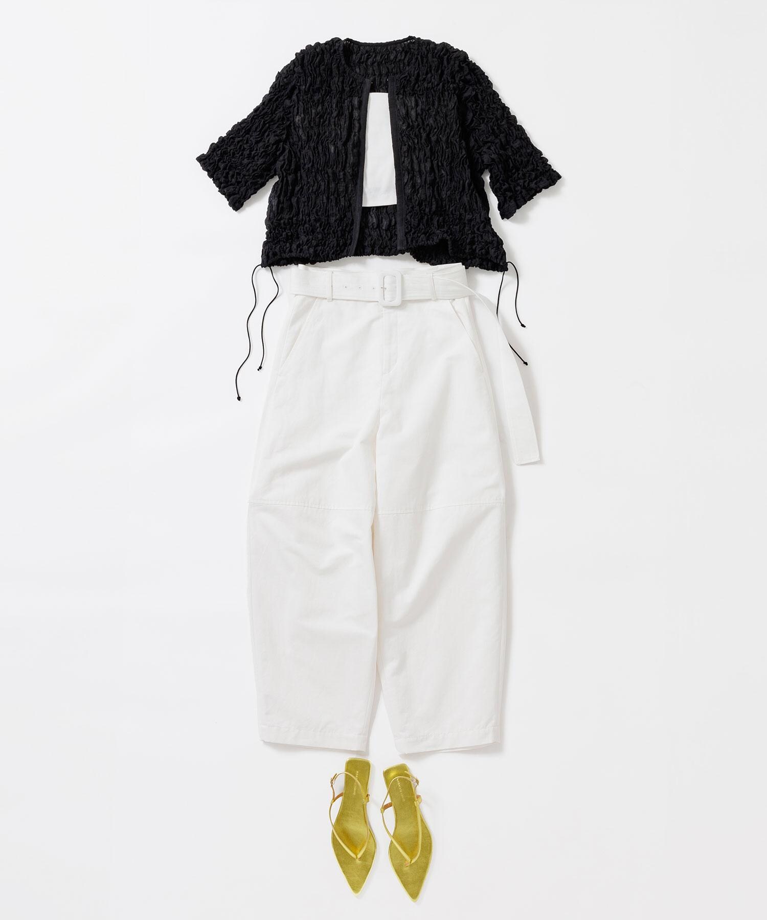 コットンリネンのさらりとした風合いのパンツは、これから暑くなる季節に肌馴染みが良く、快適に着用できるのも嬉しいポイント。