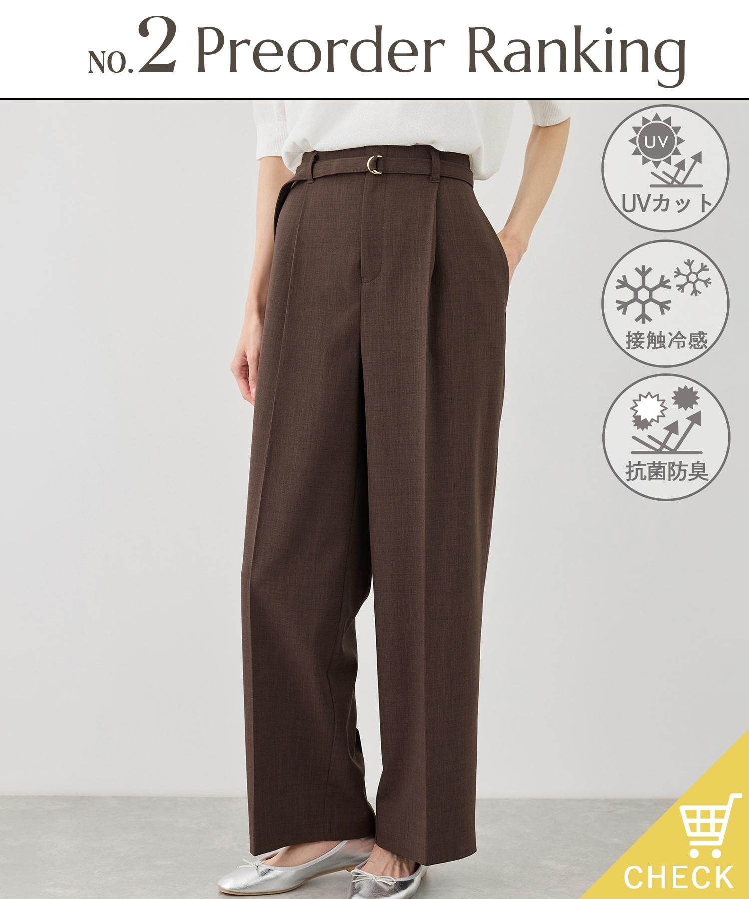 カナパ ベルト付きワイドパンツ/セットアップ対応・UV・抗菌防臭・接触冷感