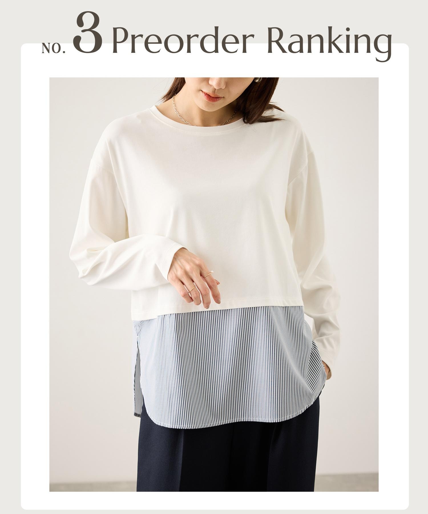 Tシャツとシャツやブラウスを重ね着したような、フェイクレイヤードデザイン。