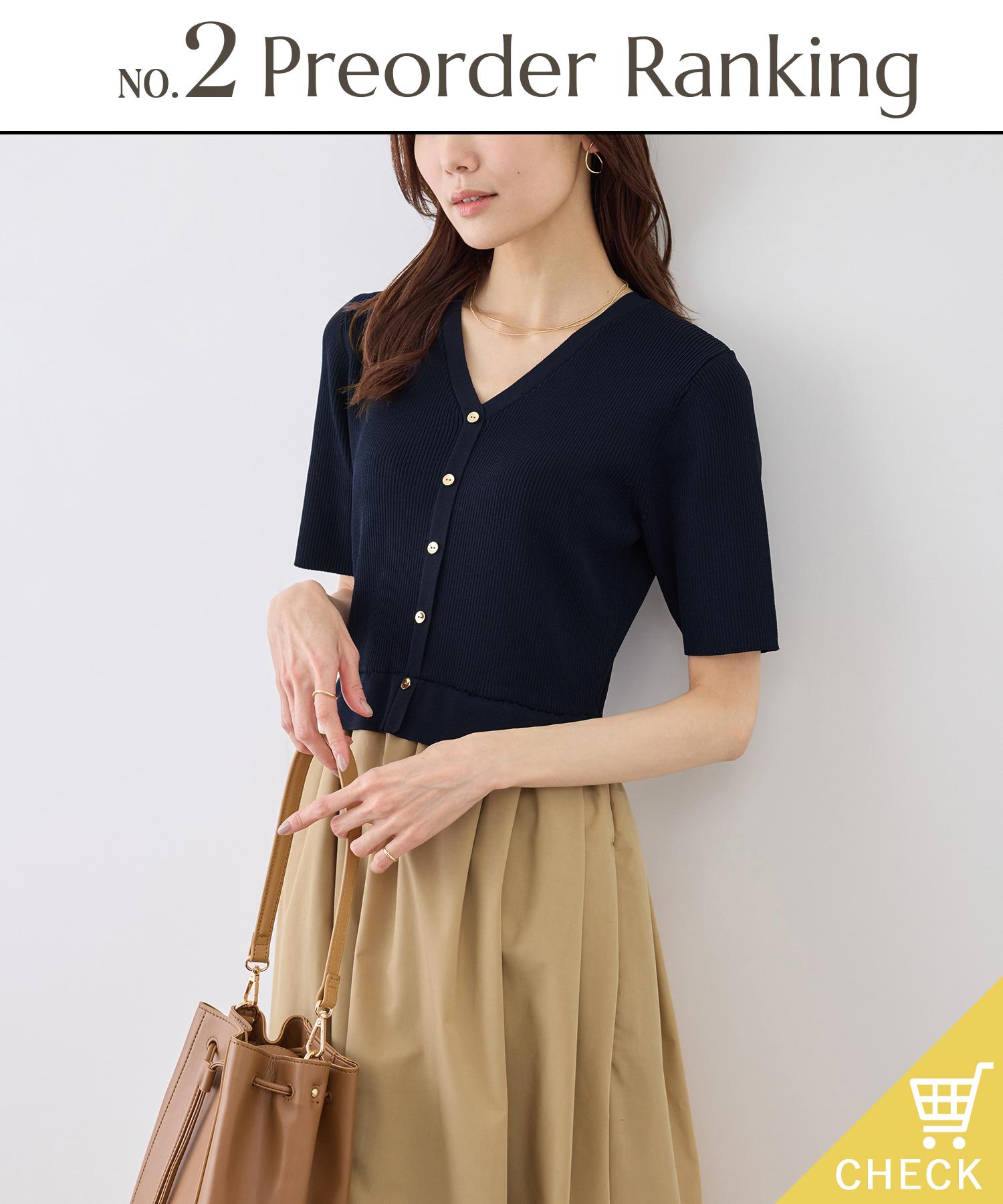 メタル釦布帛ドッキングハーフスリーブニットワンピース