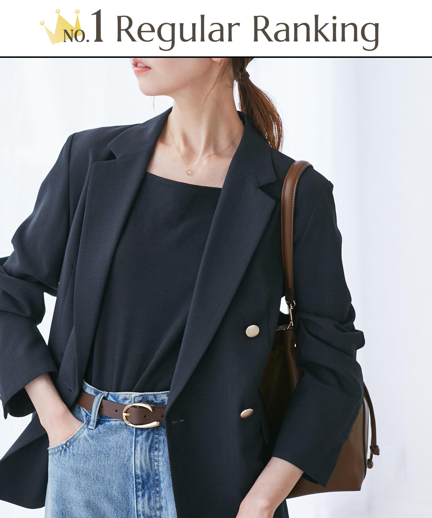 ・ゴールドのメタルボタンがリッチなアクセントになり、お仕事シーンでも品よく決まる。