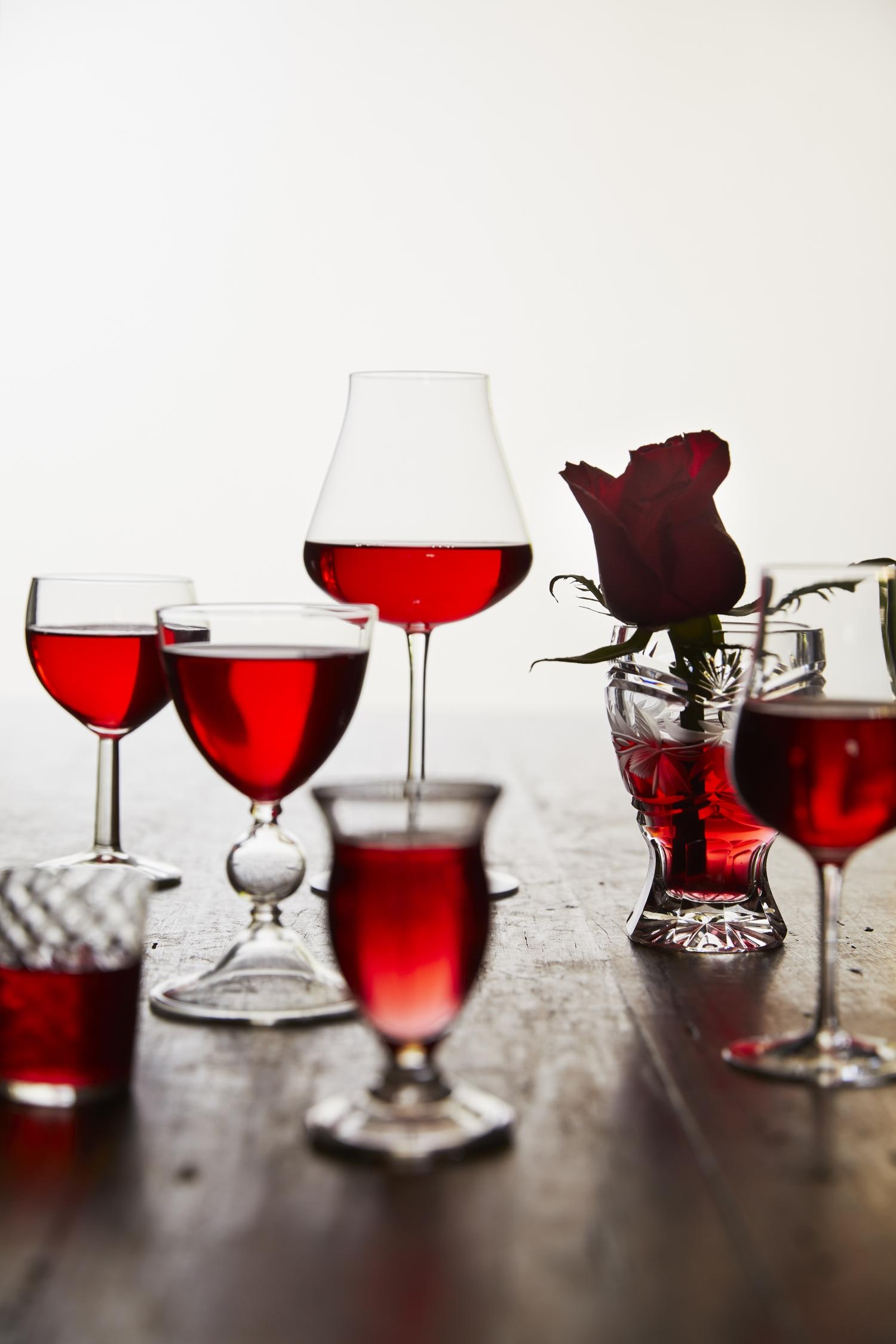 ローズの香り、ローゼルの酸味、そして折り重なるスパイスの風味広がる赤いハーブティー<ゴダール>に、冷えた白ワインをあわせたカクテルです。