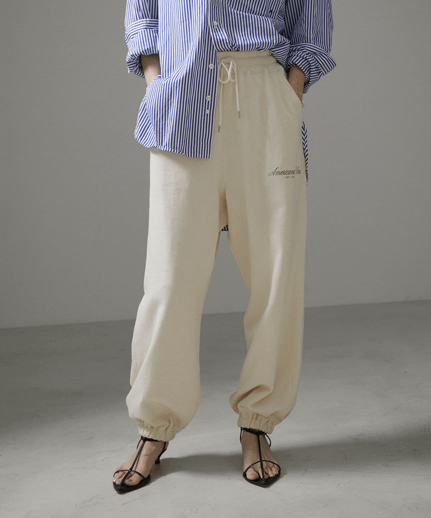 柔らかなコットン素材を使用したワイドシルエットのスウェットパンツ。