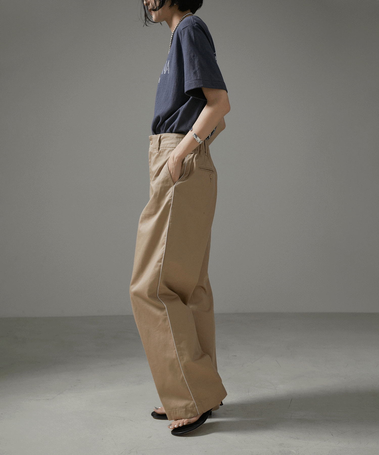 深めの股上とヒップにかけて適度なゆとりのあるストレートシルエットが魅力。