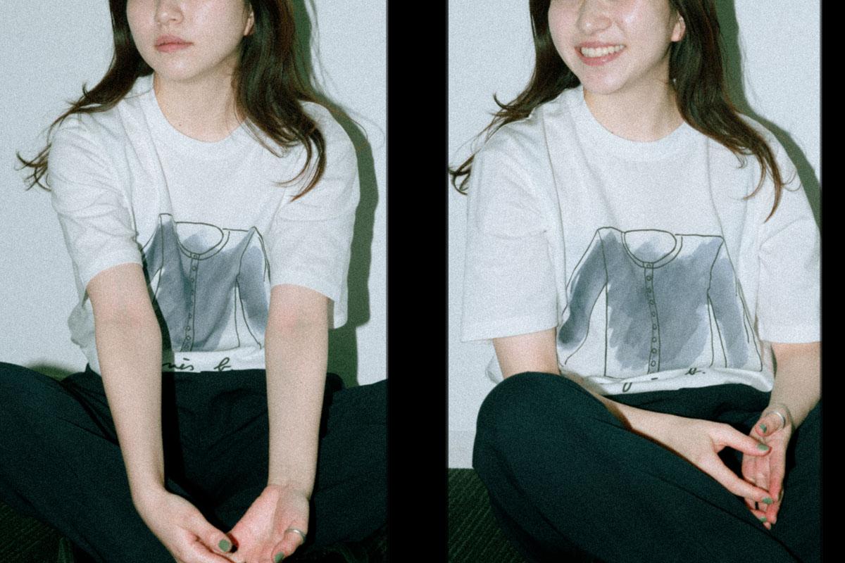 アニエスベー 本人が手書きしたカーディガンプレッションのイラストを施したTシャツも、新たに登場。柔らかいタッチがなんとも可愛らしい一着です。