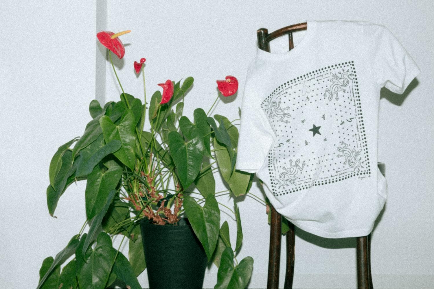 ブランドのアイコンであるレザール(とかげ)、星、ポワンディロニー、ドット、サラエボハートが散りばめられたバンダナプリントのTシャツや、稲妻マークが大きくプリントされたTシャツ、そして大人気のカーディガンプレッションは、カットソー素材で別注。夏の羽織りとして活躍すること間違いなし。